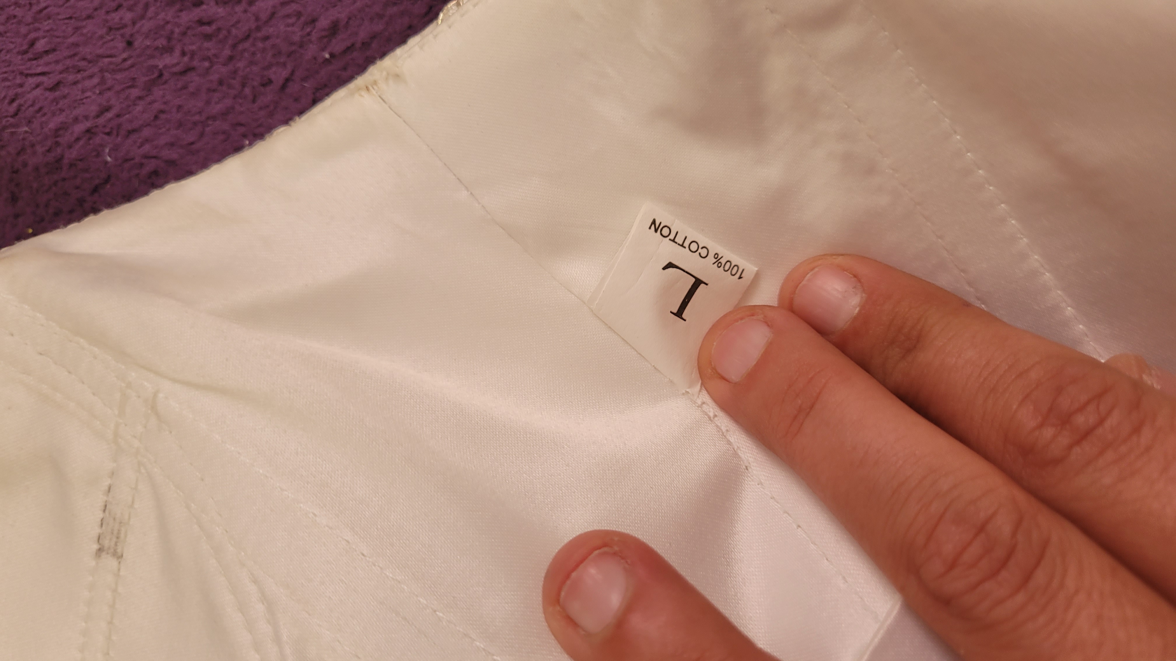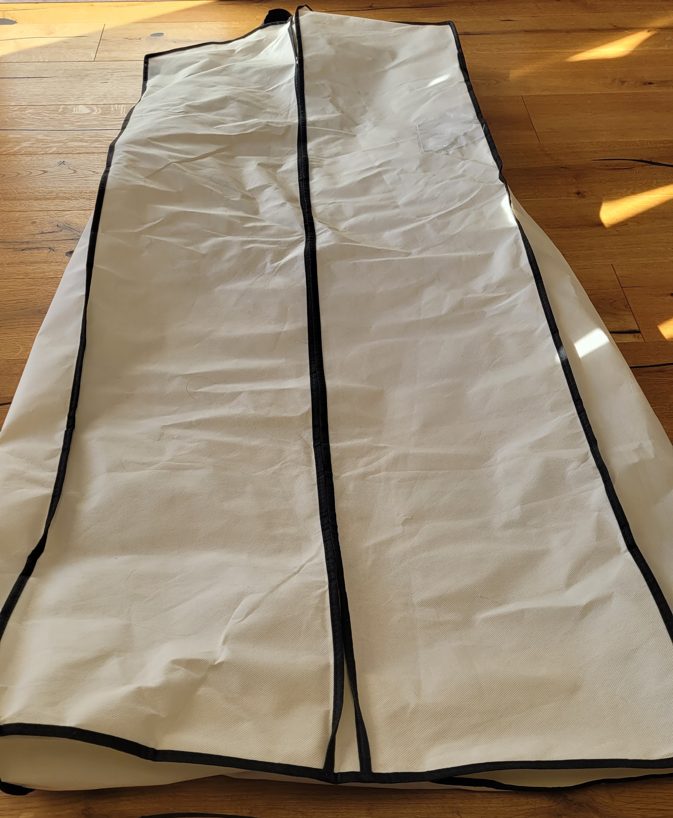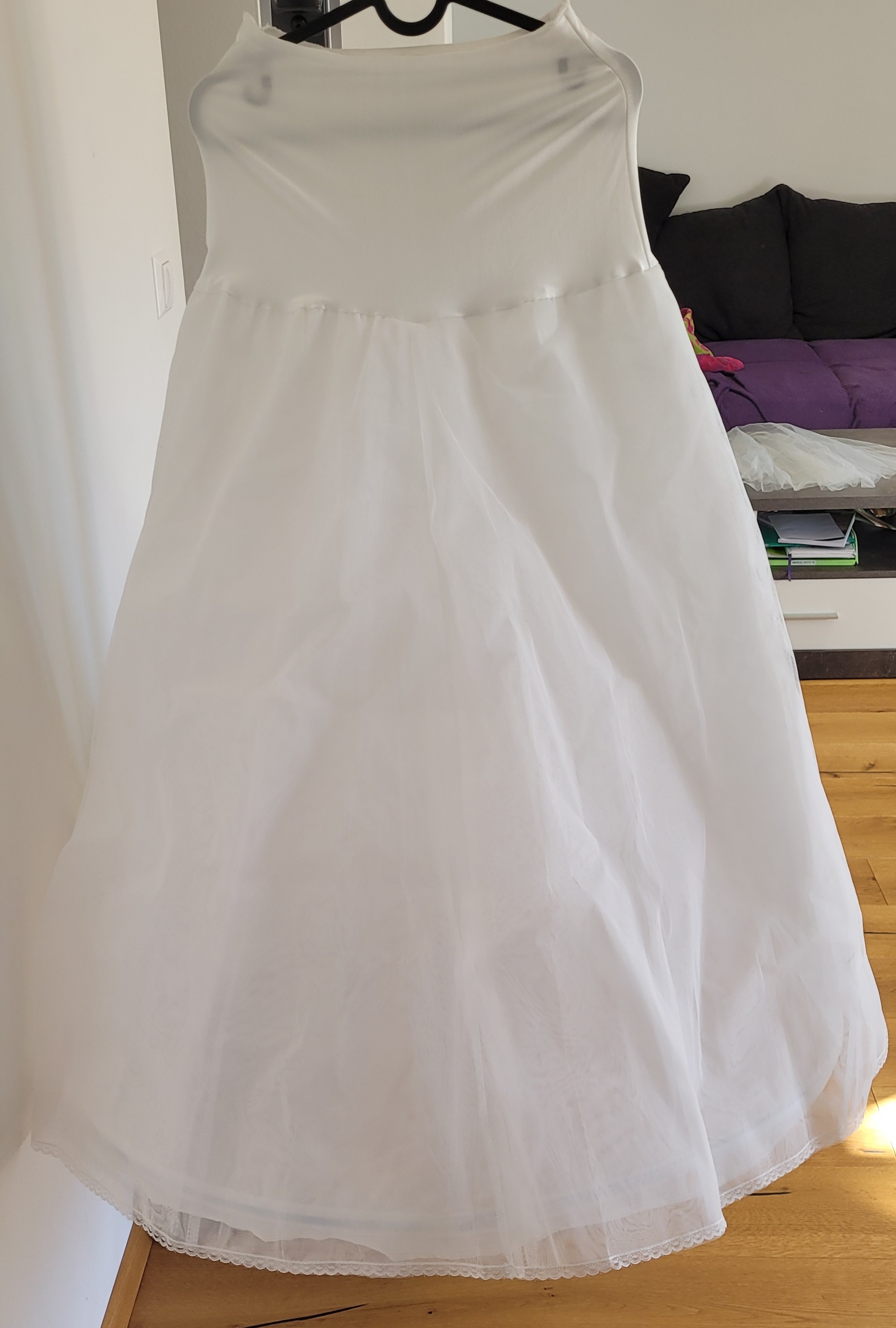 Es ist in Top Zustand. Es gibt ein Bild wo man sieht das hinten ganz unten ein bisschen Schmutz ist aber das sieht man nicht da die anderen Schichten des Kleides es verdecken. Man kann es aber reinigen lassen.