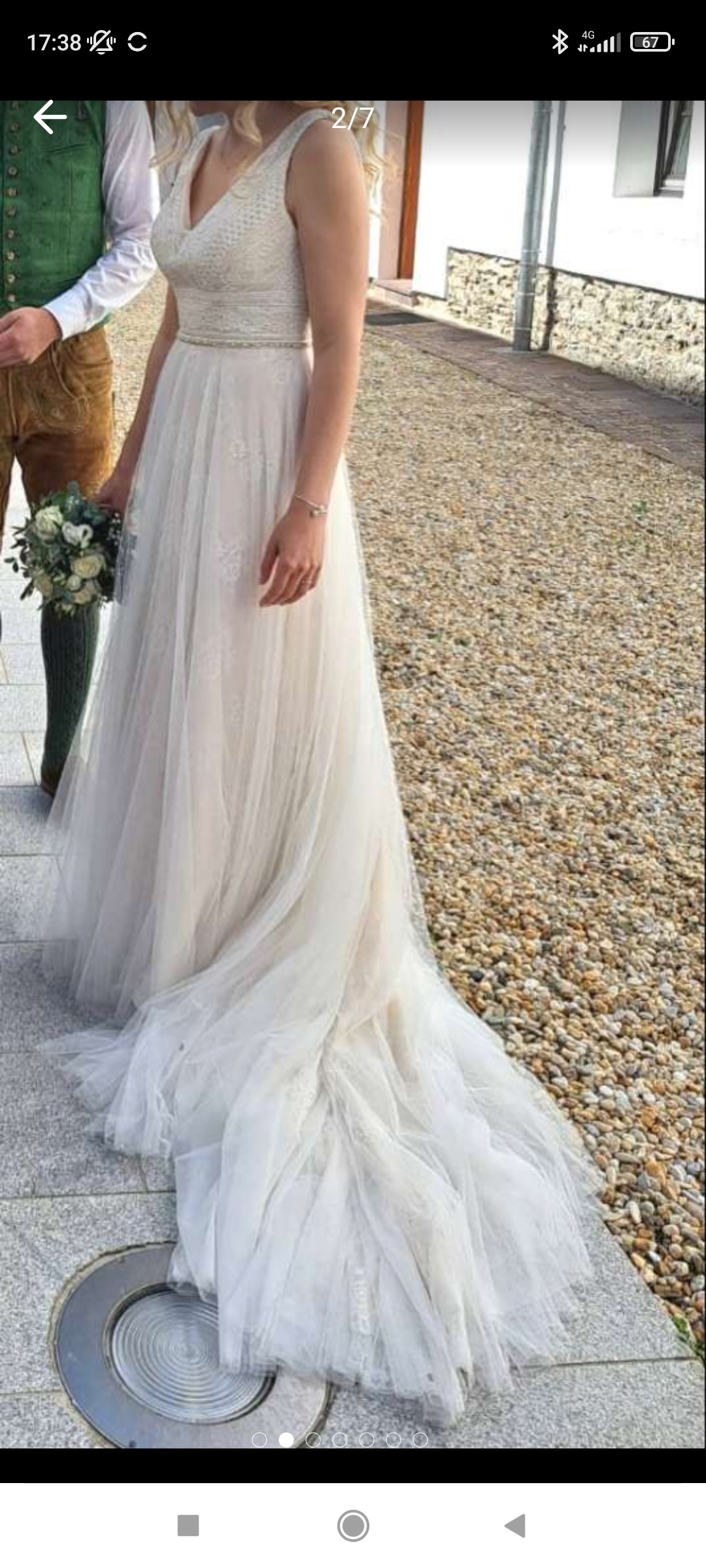 Ich trenne mich schweren Herzens von meinem Brautkleid in Größe 36 / Boho Stil mit Schleppe- diese kann hochgesteckt werden.
