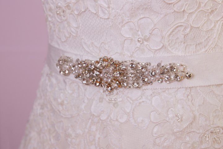 - aufgenähter Gürtel mit Strass und Kunstperlenbrosche (kann auch entfernt werden)
