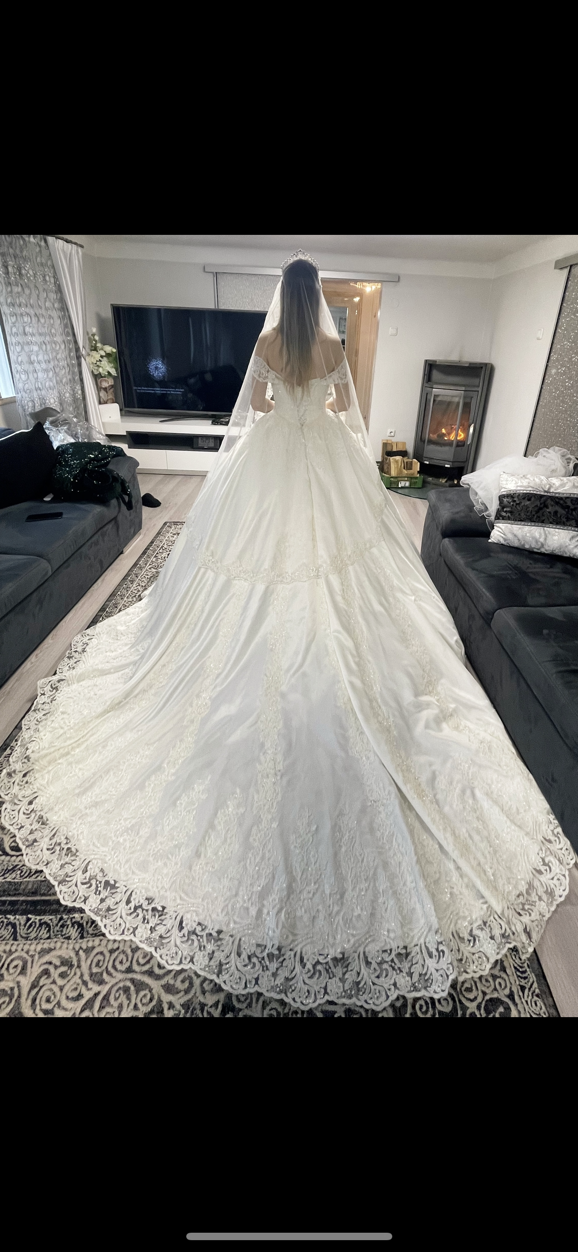Ich habe das Kleid am 18.02.21 gekauft also sehr NEU. Es wurde etwas umgeändert und bisschen mehr Perlen eingearbeitet aber sonst nichts. Leider kann ich das Kleid nicht zurück geben und von daher verkaufe ich es sehr günstig weiter.