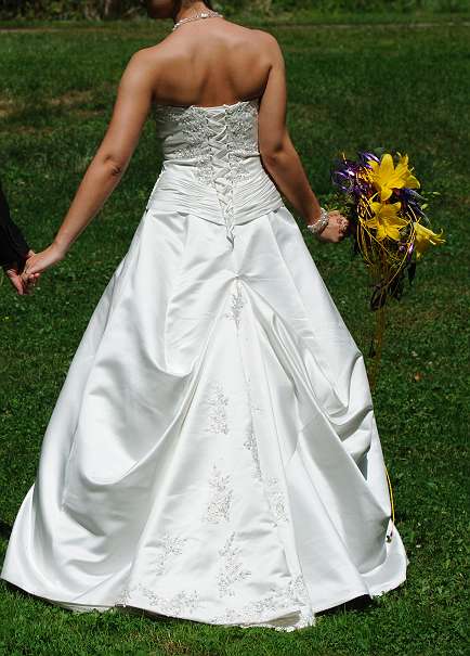 Brautkleid Größe ca. 34-36, Schnürbindung hinten, aufwendige Bestickungen, Satin ivory, lange bestickte Schleppe