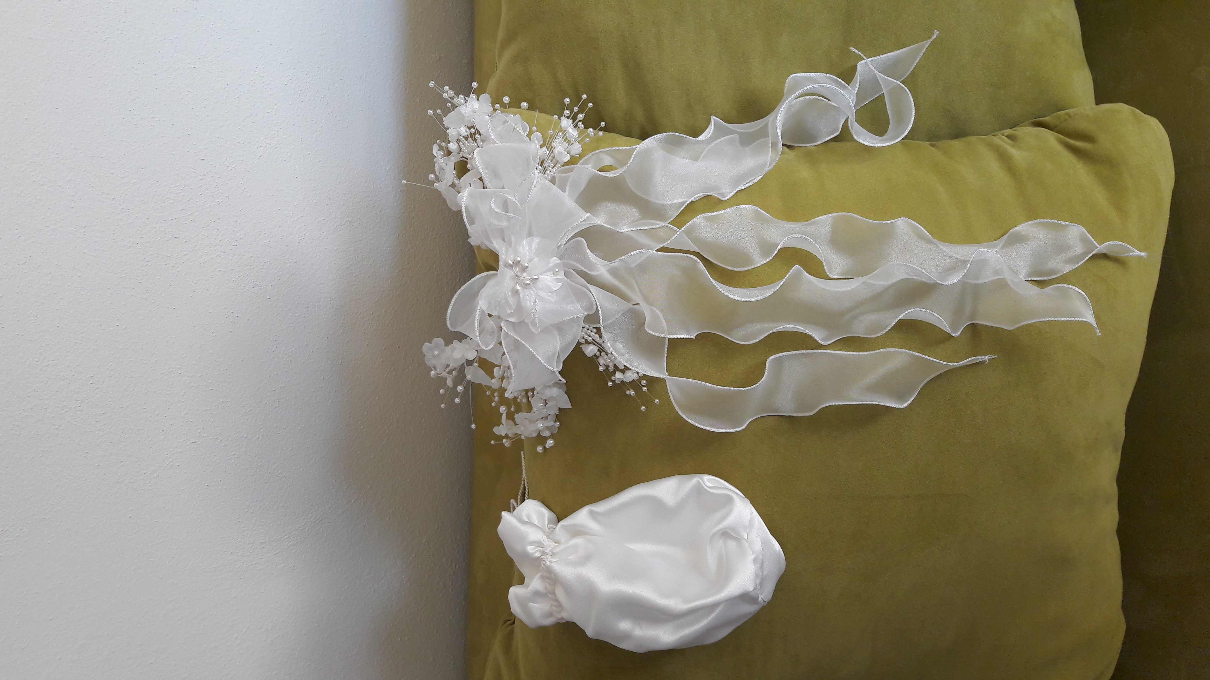 Brautkleid weiß – neu – UNGETRAGEN – mit Cape – Haarschmuck – Stofftäschchen