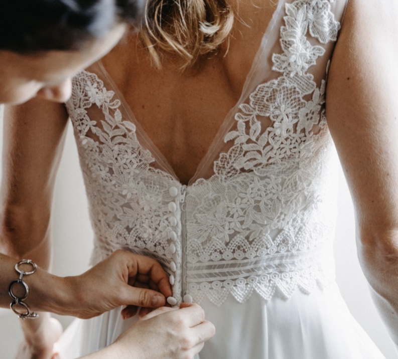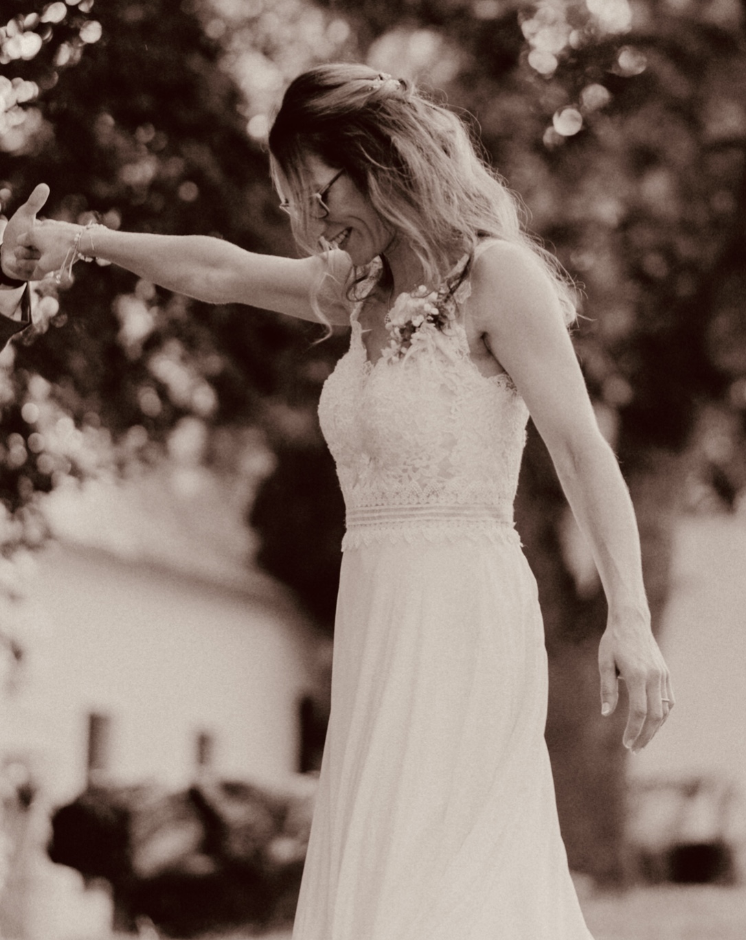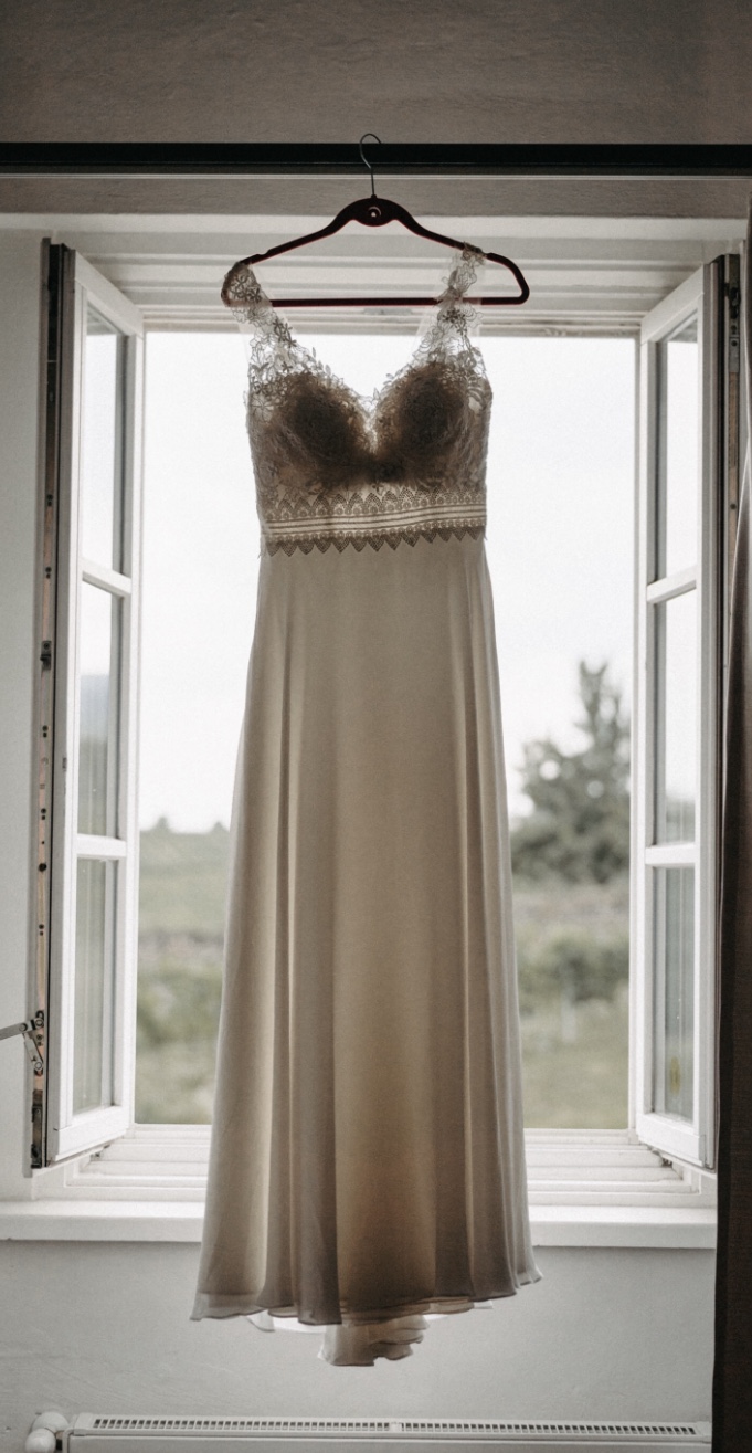 Die Schleppe wurde nur für die Fotos und während der Trauung heruntergenommen.