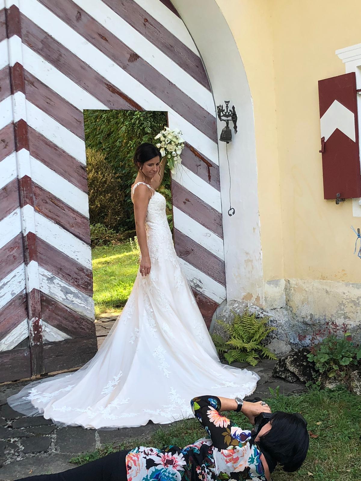 Schweren Herzens verkaufe ich wegen Platzmangel mein für mich das wunderschönste Brautkleid .Ich trage Größe 34,bin 165cm groß und habe Schuhe mit einem Absatz von ungefähr 3cm getragen.Ich habe es heuer gekauft,die Hochzeit war im August,es ist aus der Kollektion 2018.Gekauft wurde es bei Brautmoden Steinecker und hat die Farbe Creme-Beige,es hat vorne am Dekollete und am Rücken eine Tattoospitze in Hautfarbe.Besonders schön ist die lange Schleppe, die man natürlich hochstecken kann.Die Bh-schalen sind ins Kleid eingenäht und haben Körbchengröße A.Das Kleid wurde professionell gereinigt,und ist somit in neuwertigem Zustand.Der Neupreis war 1400Euro.Habe einen Reifrock unterm Kleid getragen, den ich natürlich auch dazugebe um 30 Euro,Neupreis 75 Euro.Ich verkaufe auch die passenden Schuhe, die ich ebenfalls bei Steinecker gekauft habe,sie haben Größe 38,5.Verkaufspreis 70 Euro.Neupreis war 140 Euro.Haarschmuck 20 Euro,Neupreis 50 Euro.Ich habe alles bei Brautmoden Steinecker gekauft, da ich die beste Qualität wollte,ich war mit allem sehr zufrieden und verkaufe es mit gutem Gewissen.Originalrechnungen sind natürlich vorhanden.Kann auch gerne anprobiert werden.