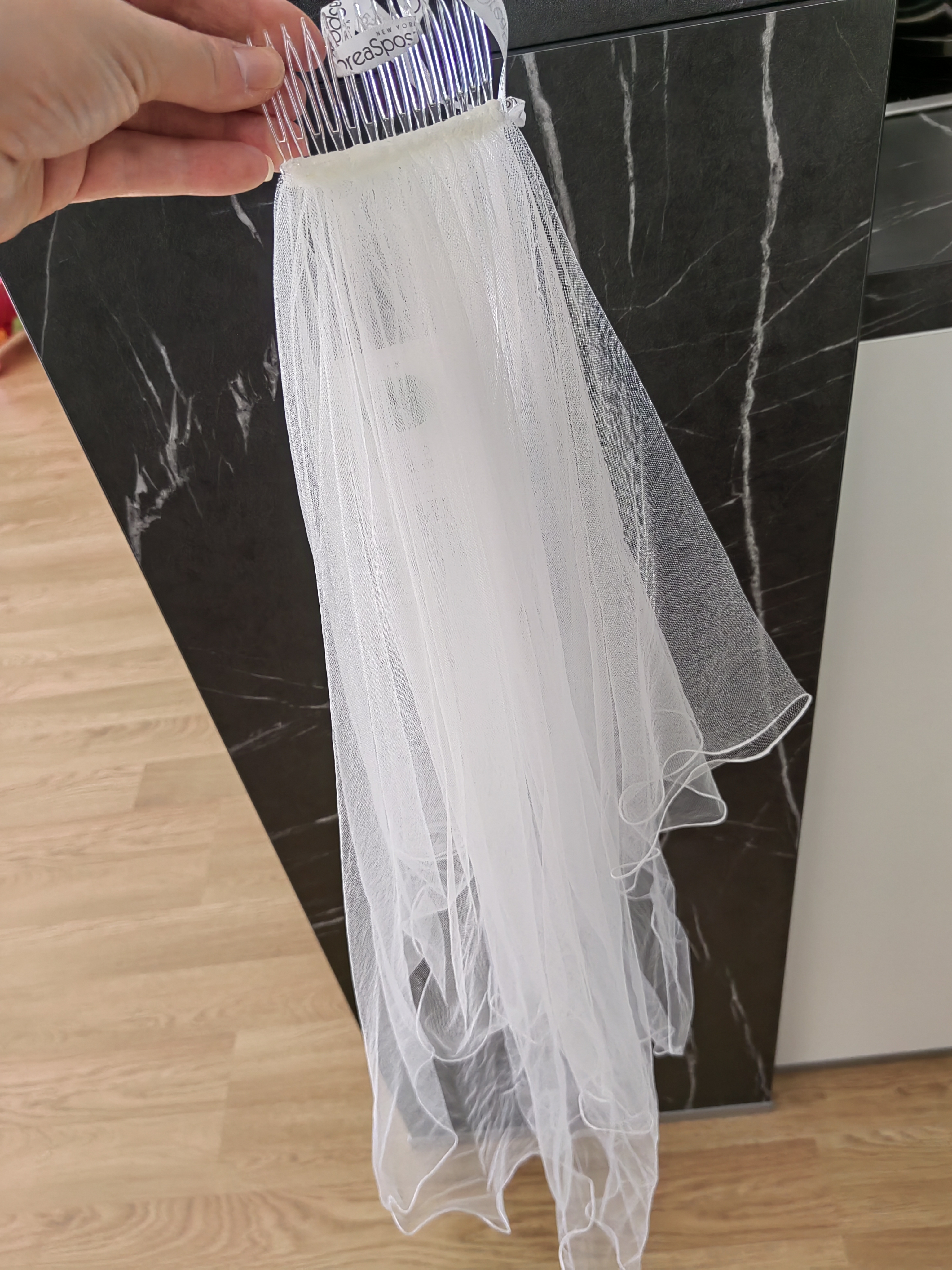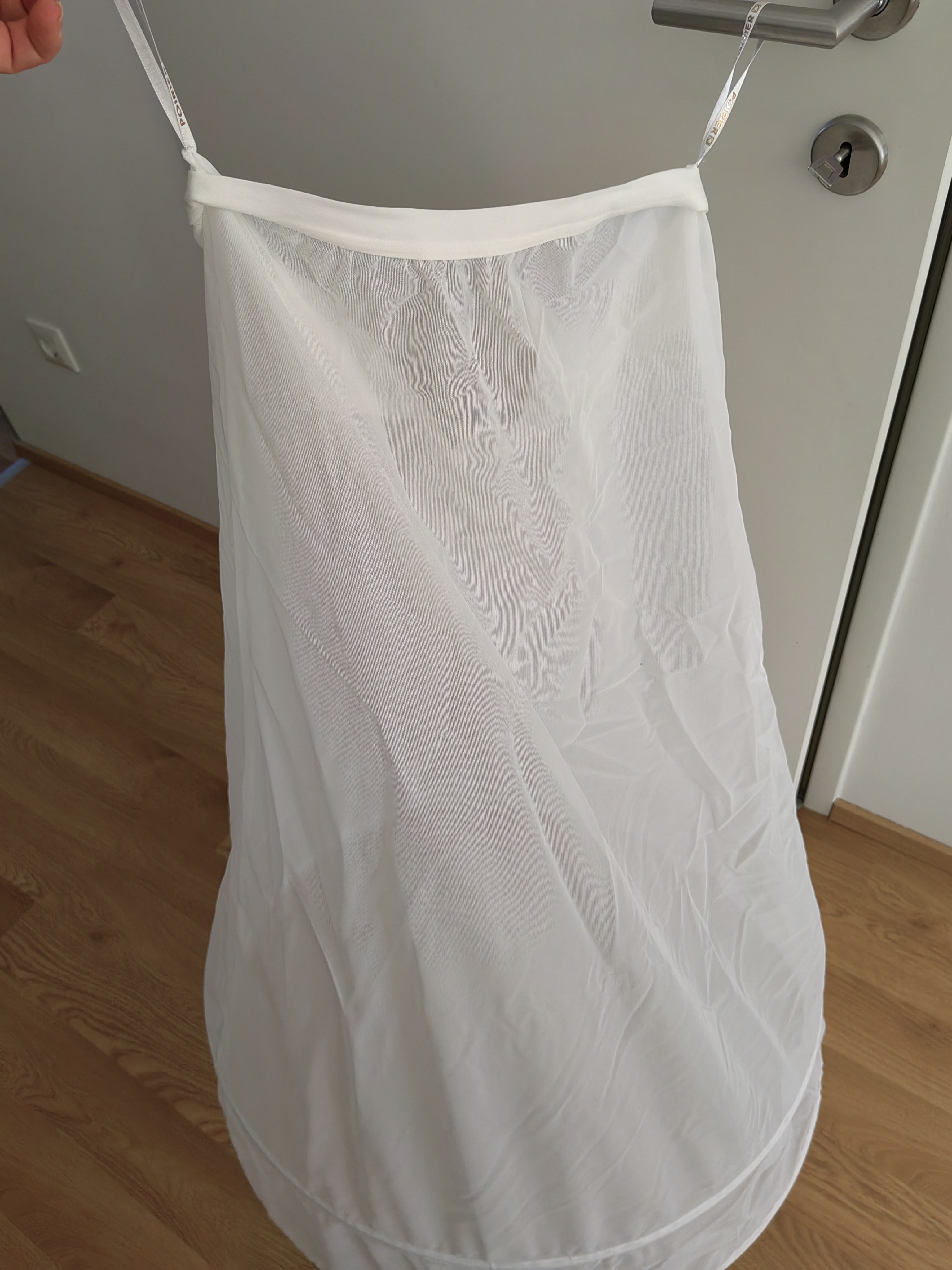 Schleier und Reifrock gibt es dazu. Das Kleid wurde ganz wenig gekürzt. Ist ungetragen