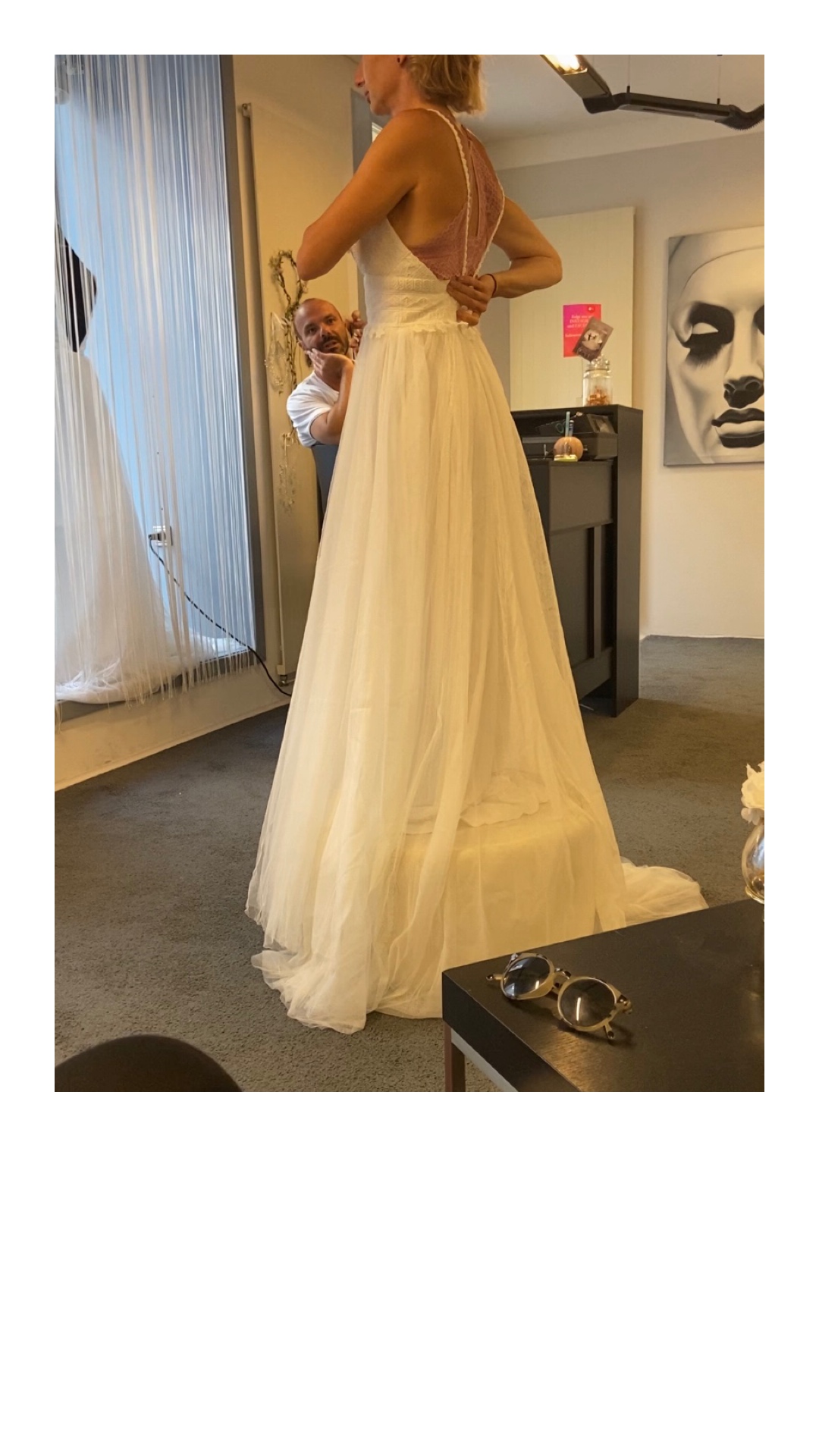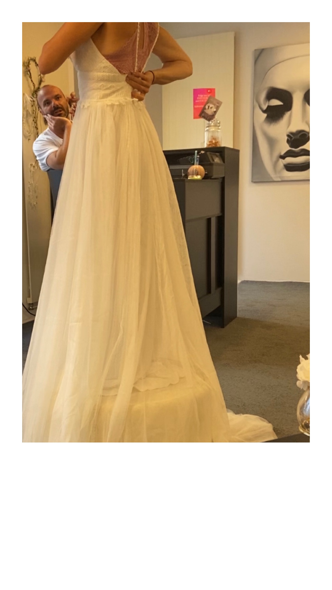das Kleid ist im Originalzustand und kann also komplett individuell angepasst werden