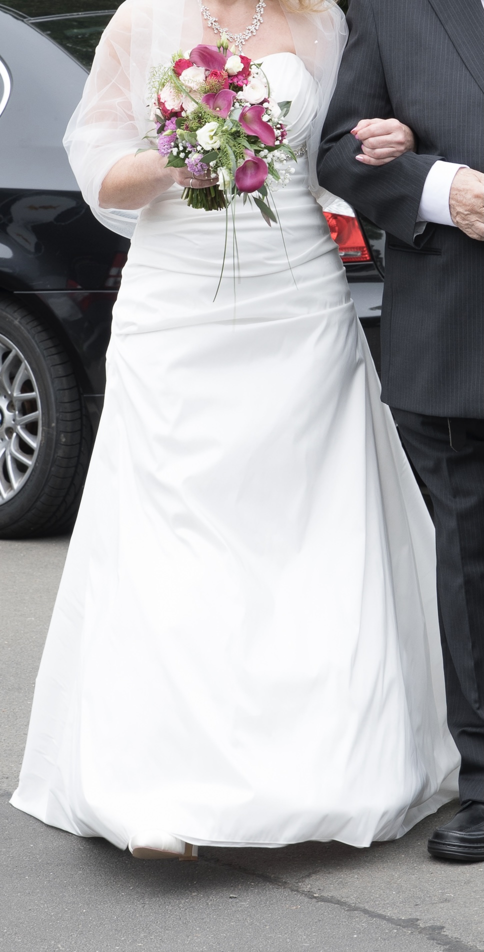 Ich verkaufe mein Brautkleid, Größe 38, hochwertiger Stoff, „Jessie K.“ aus dem Brautmodenfachgeschäft. A-Linie…. Das Kleid macht eine super Figur und man kann trotzdem richtig feiern und sich bewegen/ tanzen.