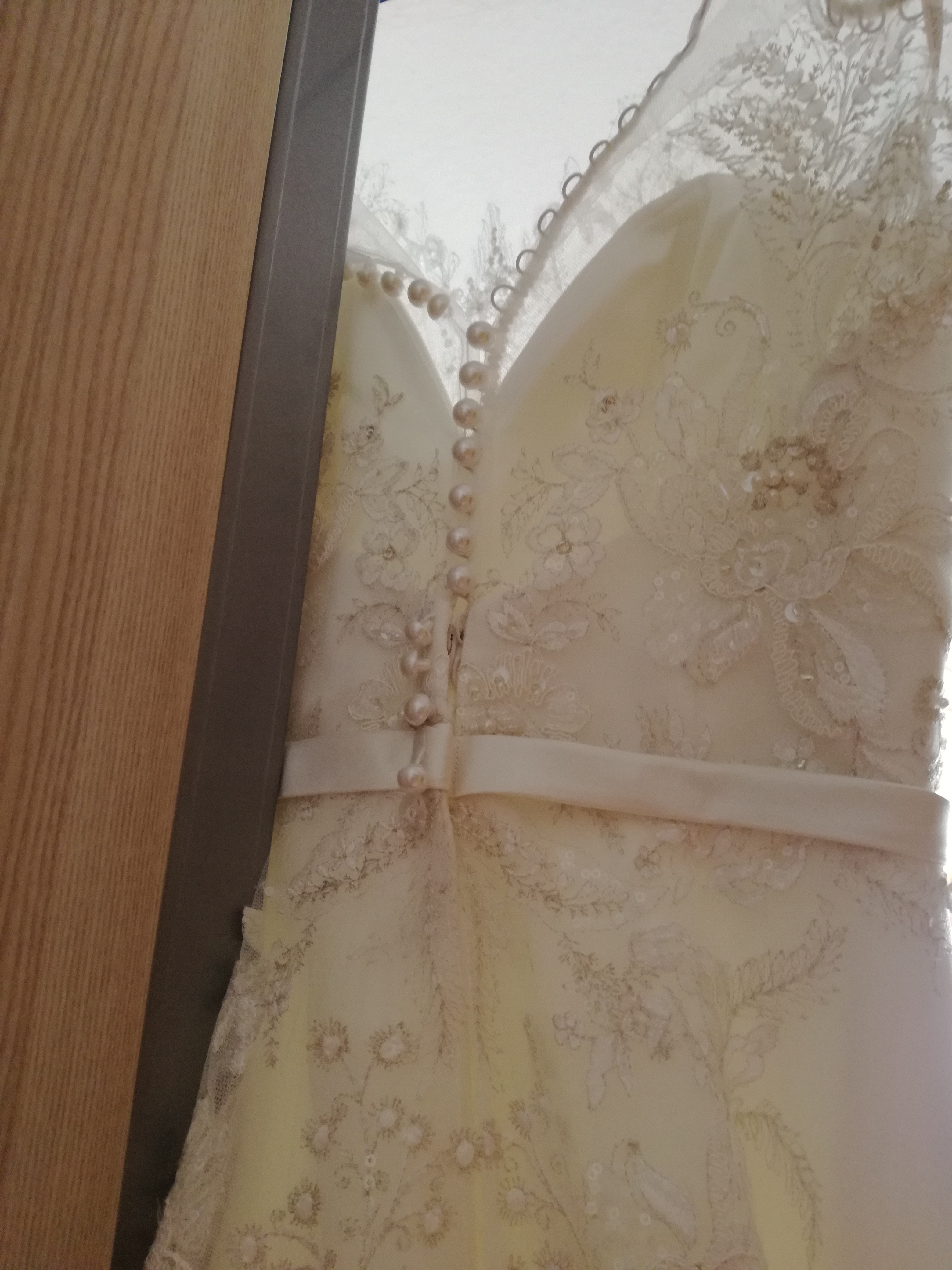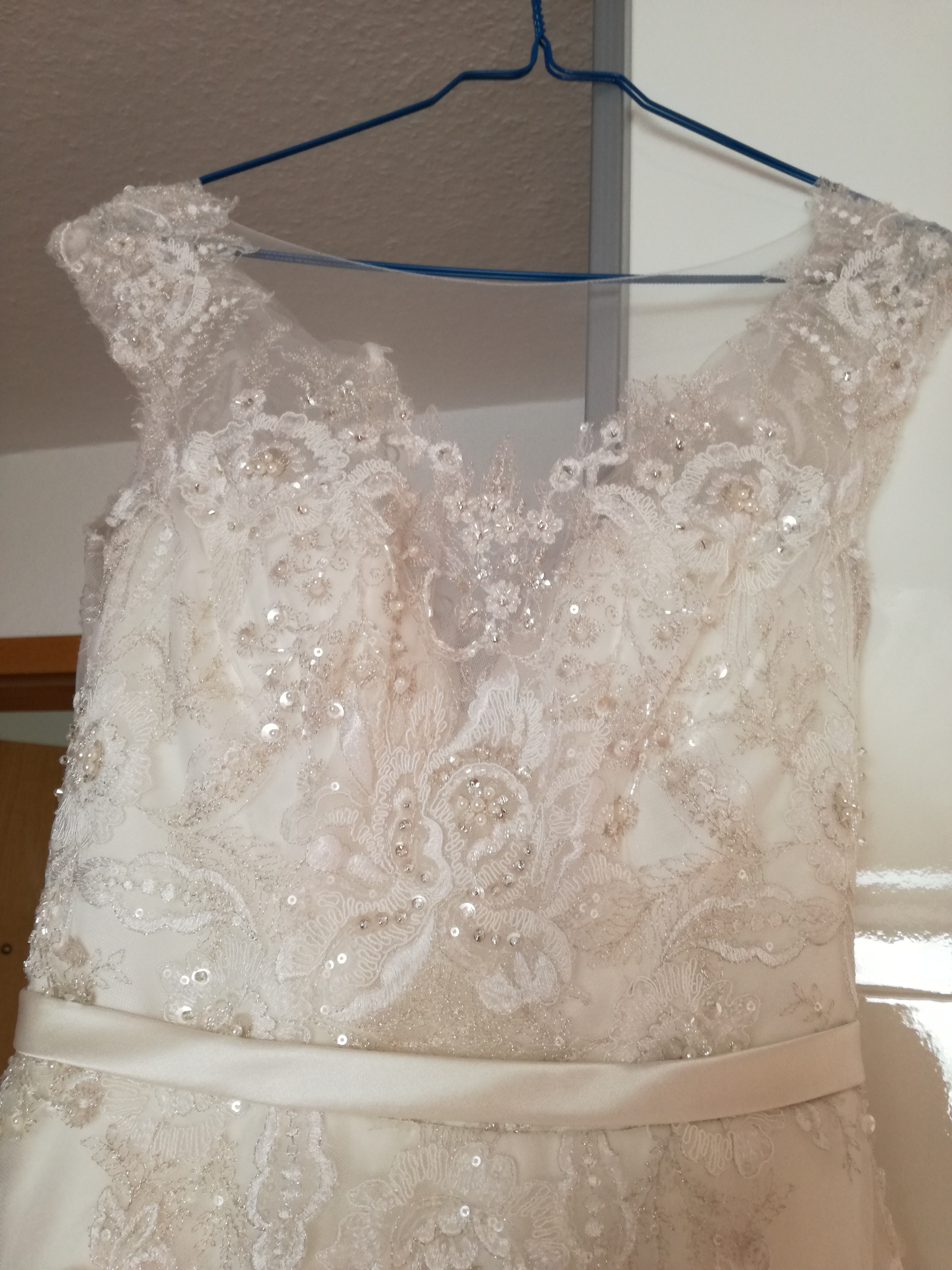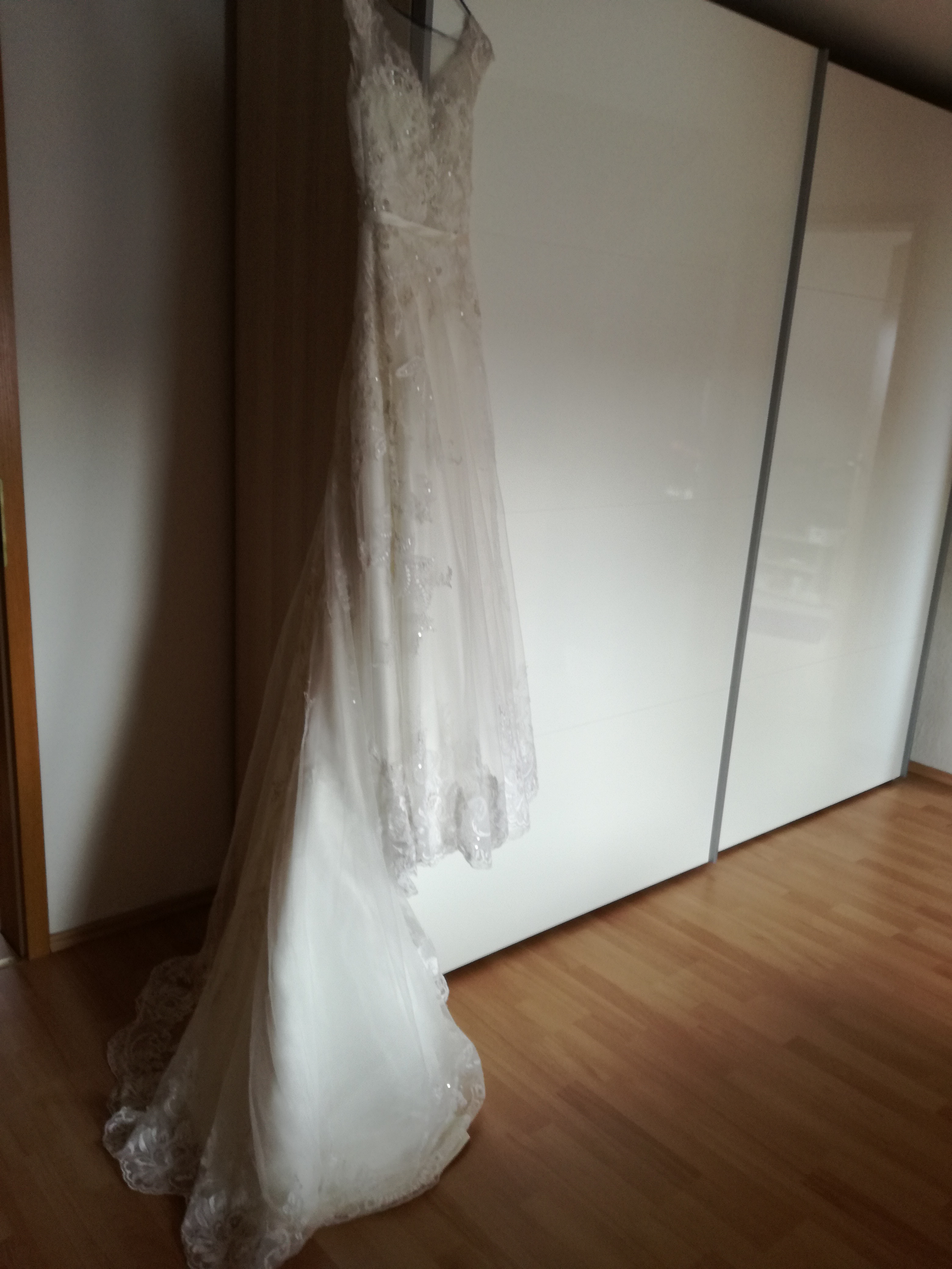 Ich verkaufe mein einmalig getragenes und danach gereinigtes (durch eine Reinigungsfirma) wunderschönes Brautkleid der Marke Maggie Sottero. Farbe: ivory. Es ist sehr angenehm zu tragen und ermöglicht ein unbeschwertes Tanzen,auch mit dem Partner :-). Durch die vielen Highlights ist es ein absolutes Traumkleid. Es hat Glitzer,dennoch hat es auch viele edle und schlichte Akzente. Die große Schleppe ist traumhaft, kann aber durch 3Knöpfe ganz leicht hochgesteckt werden.
