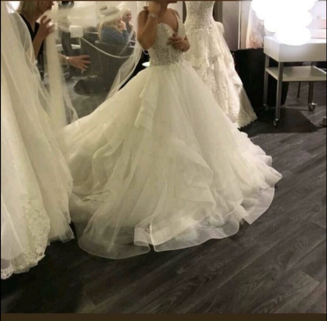 Wunderschönes Volants-Brautkleid Farbe Ivory, Größe 36 fällt aber aus wie eine 38.