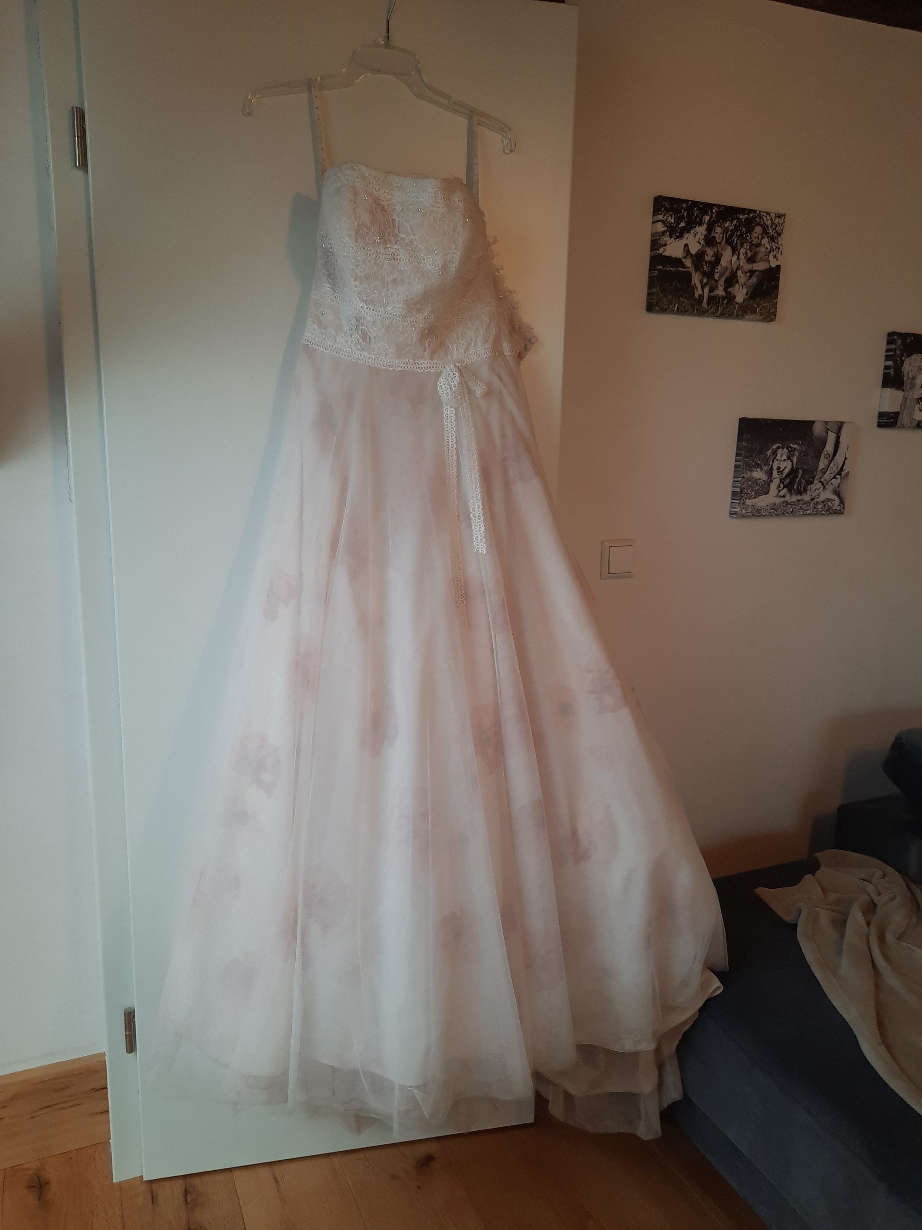 Ich verkaufe hier mein wunderschönes und sehr besonderes Brautkleid. Es ist einfach zu schade, um im Schrank zu hängen, daher darf es jetzt weiterziehen und eine andere Braut genauso glücklich machen wie mich.