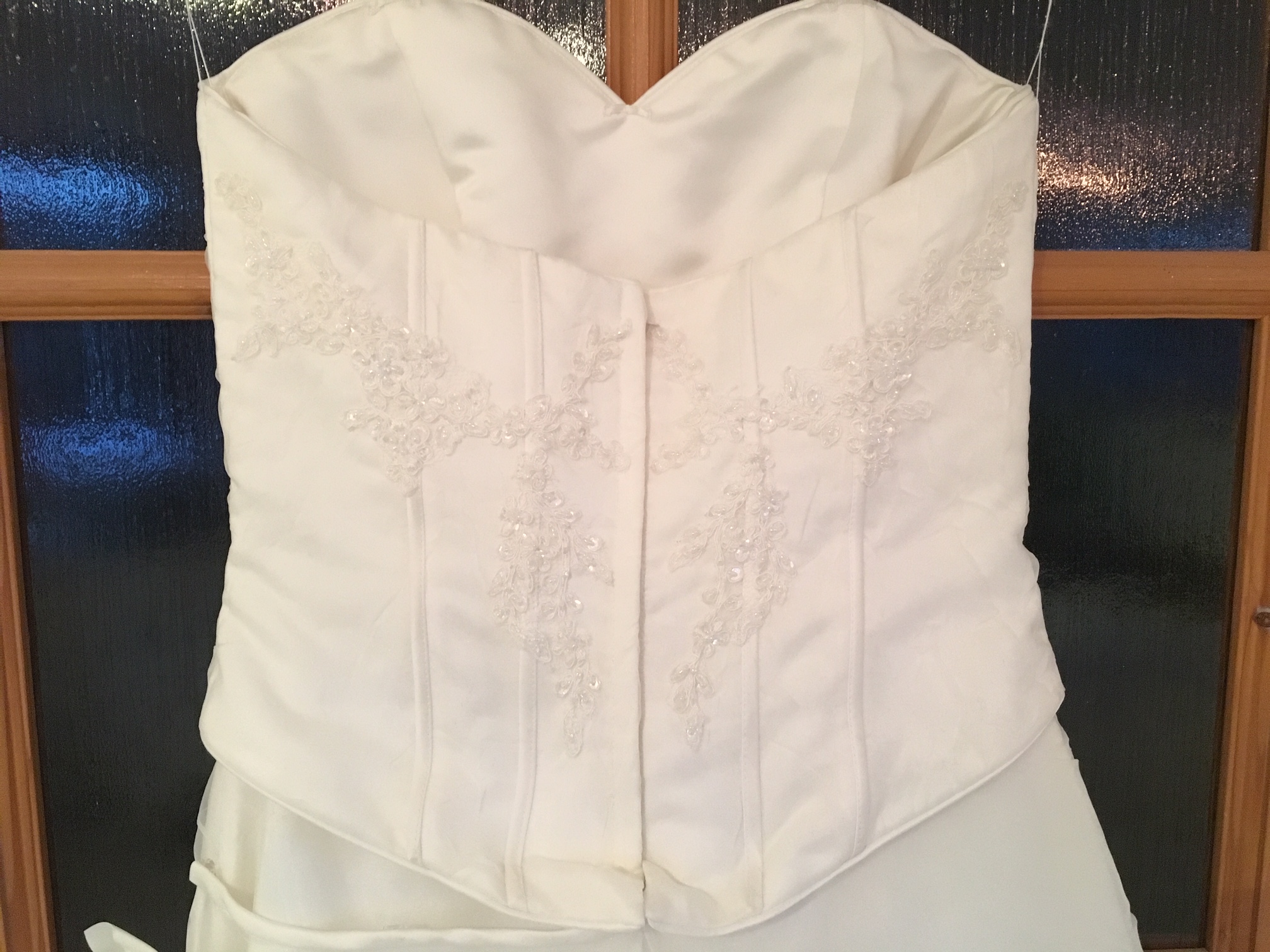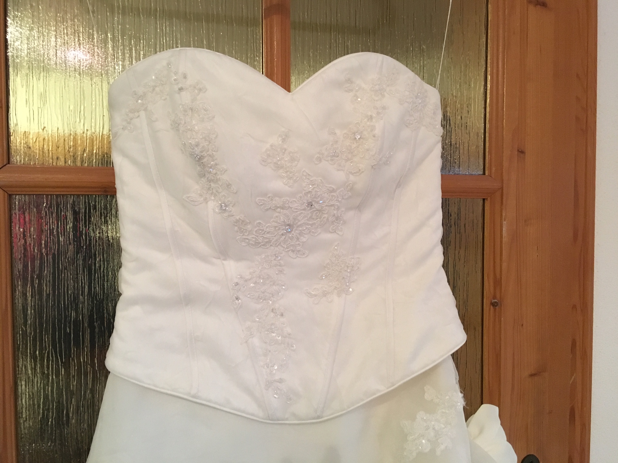 Wir haben dieses edle und sehr hochwertige Brautkleid in der Größe 36 / 38 in creme abzugeben.