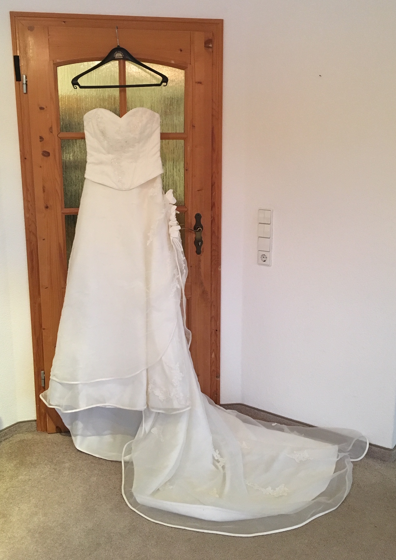 Das Kleid hat eine tolle Schleppe und hatte bei Kauf einen Neupreis von 1.299,00 €.