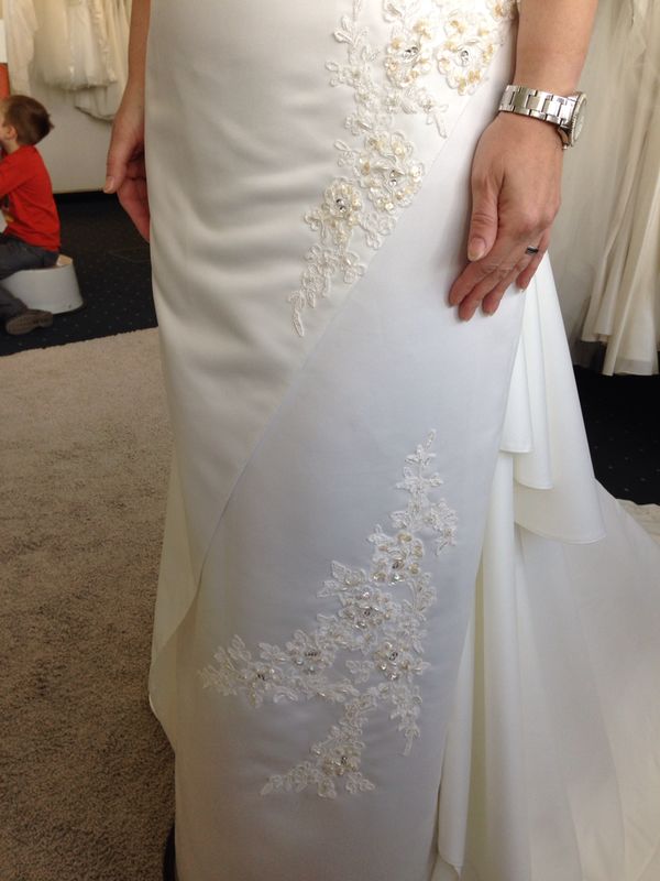 Ich verkaufe hier ein elegantes gerade geschnittenes Brautkleid mit Schleppe. Die Schleppe kann man jederzeit abnehmen.