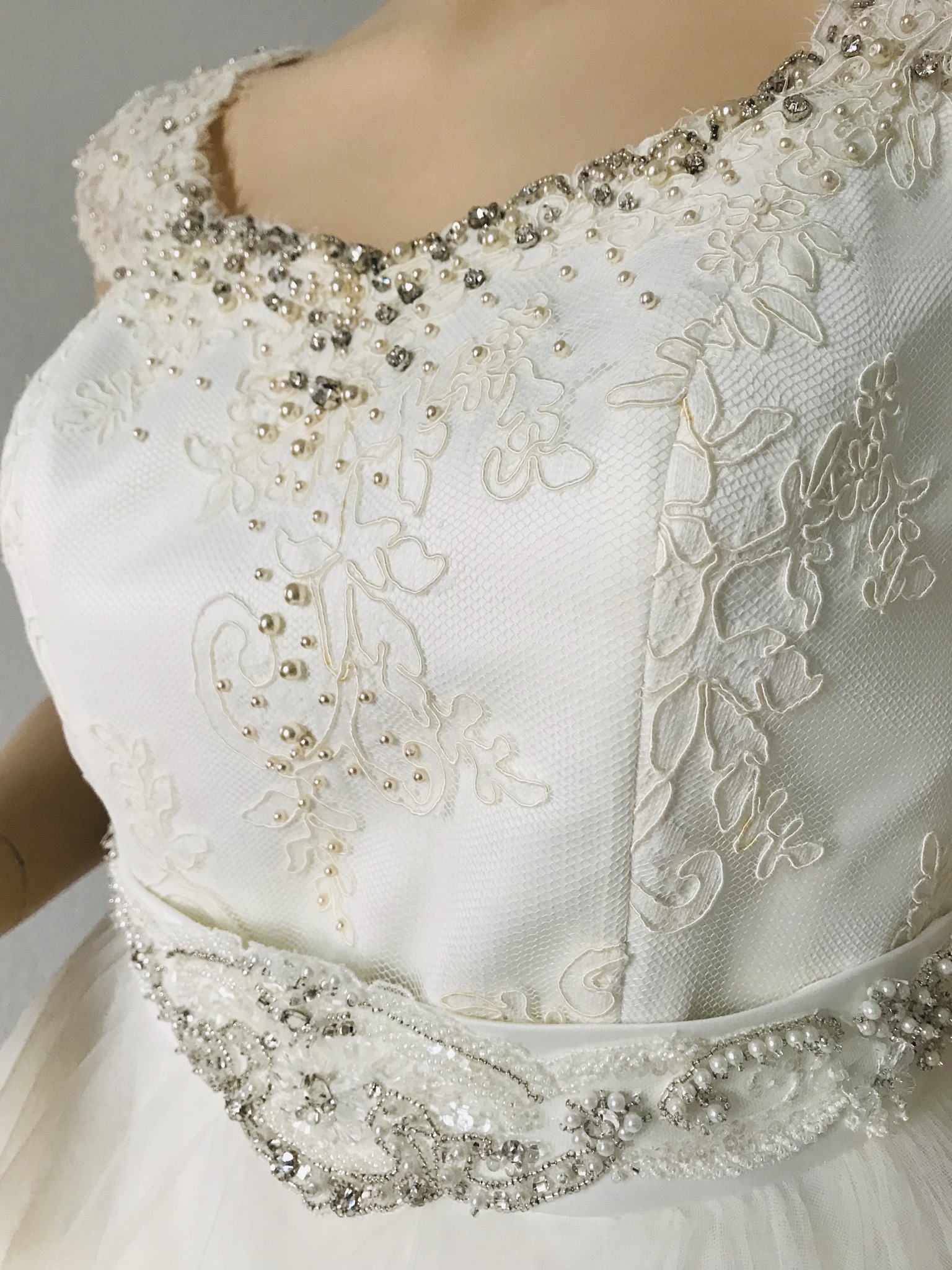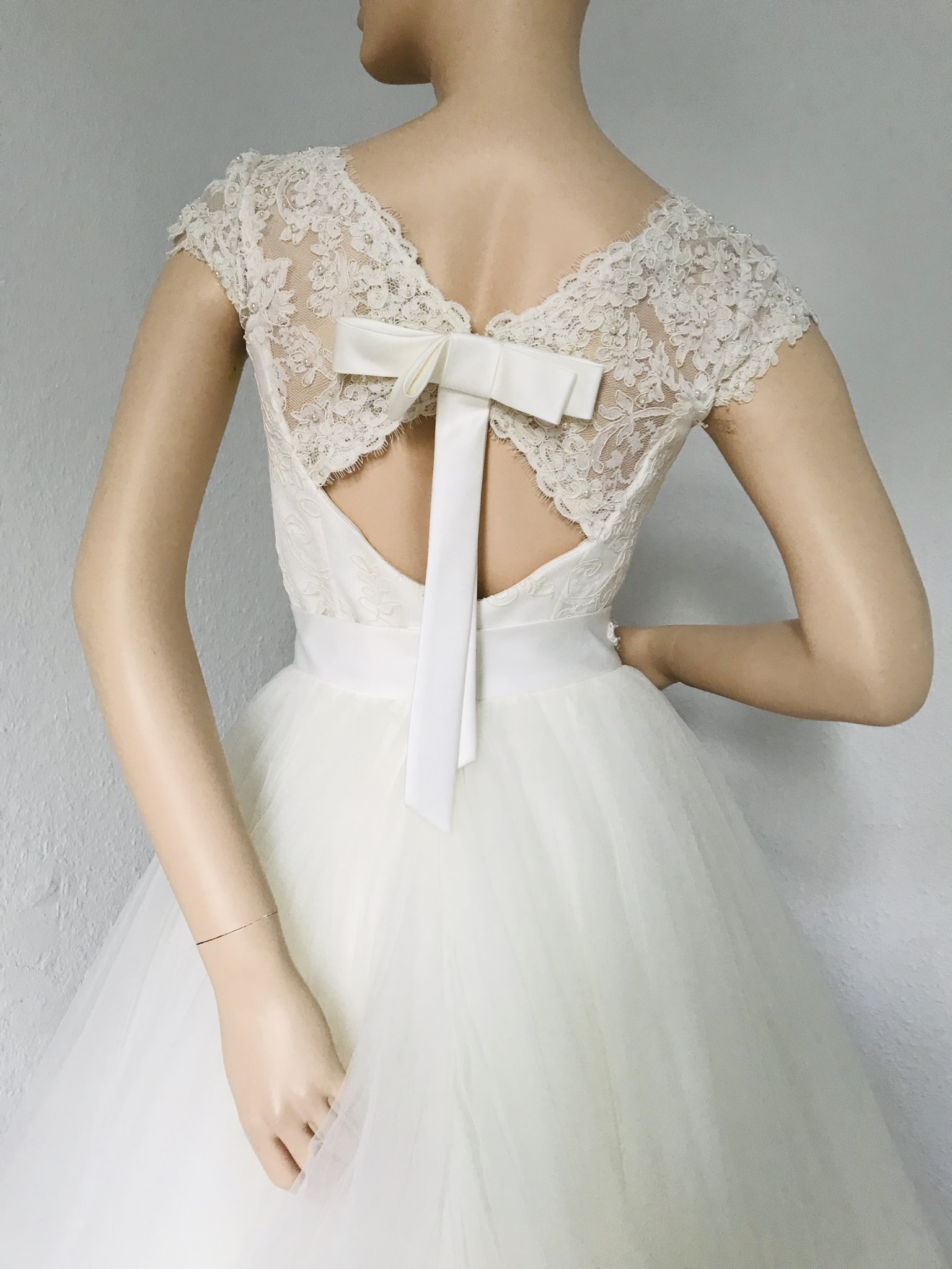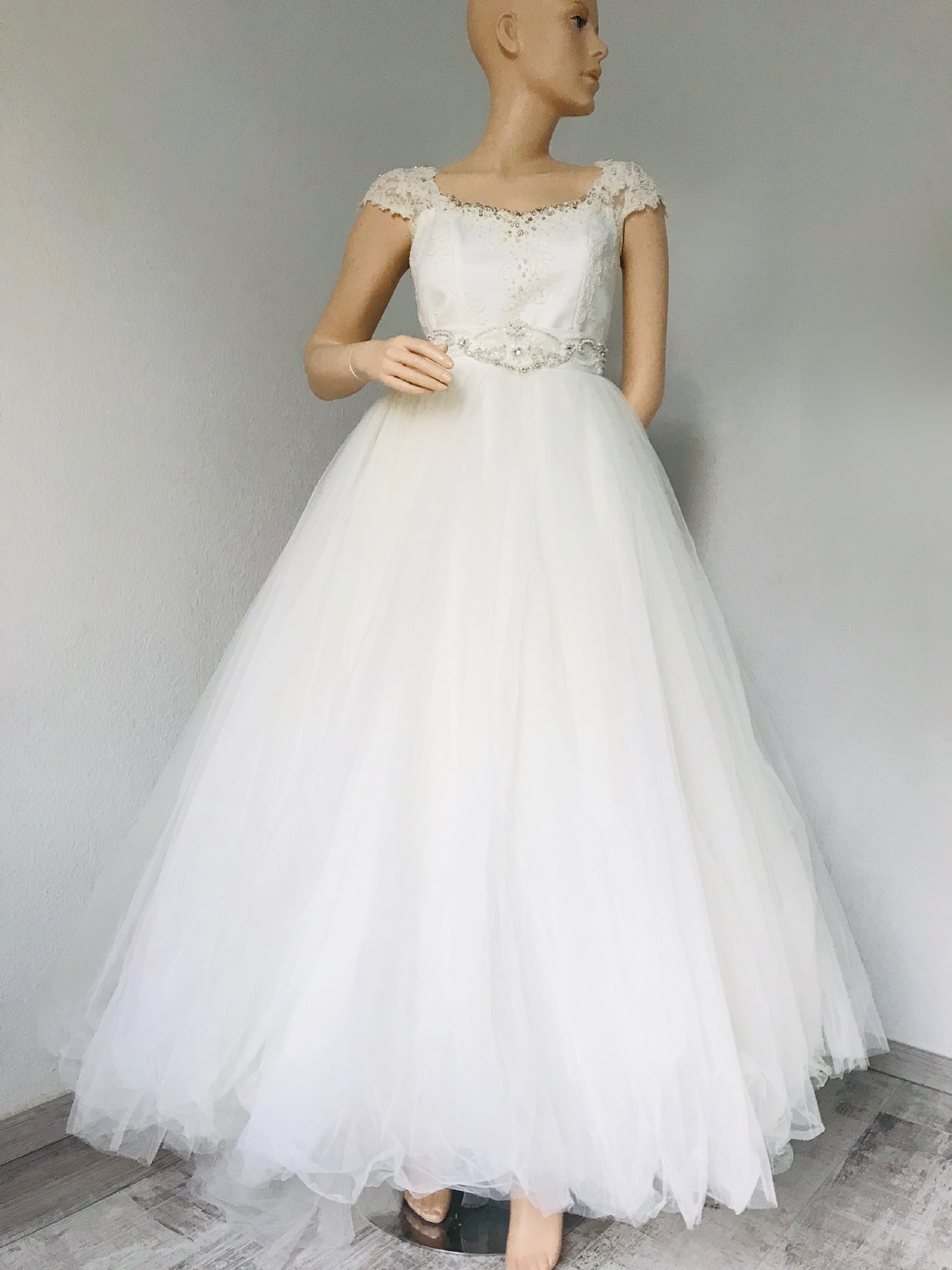 Tüll wurde schon professionell von einer Wäscherei gewaschen, das Unterkleid noch nicht.