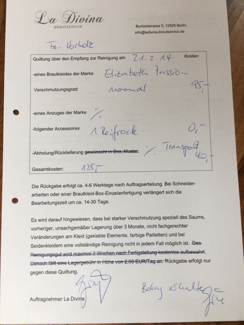 Professionell von Brautkleider Fachfirma gereinigt.