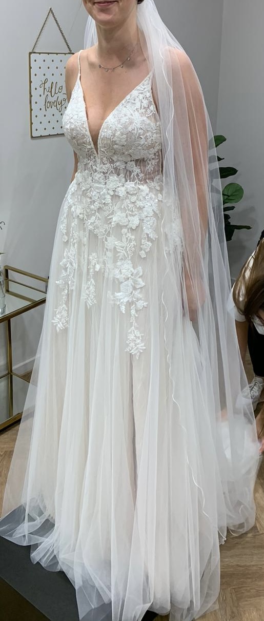 Das Kleid ist neu, ungetragen (nur zur Anprobe) und in einwandfreiem Zustand.