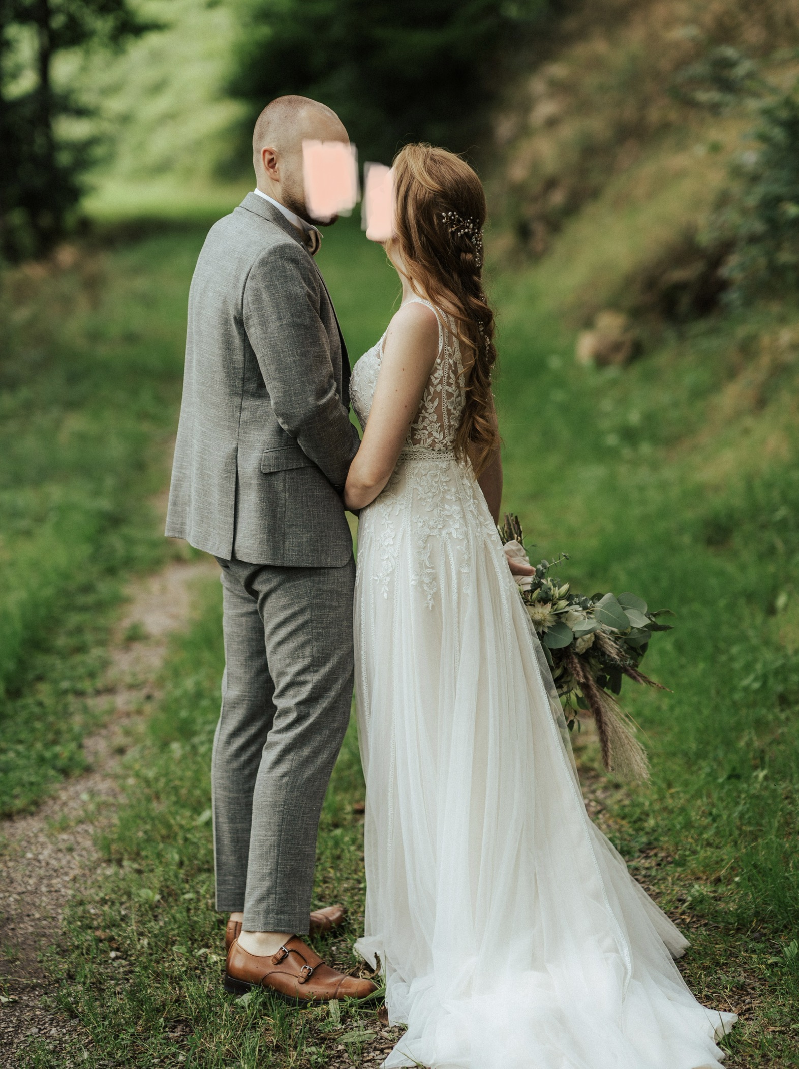 Wir verkaufen das wunderschöne Brautkleid meiner Frau, das sie 2021 bei unserer Hochzeit getragen hat.