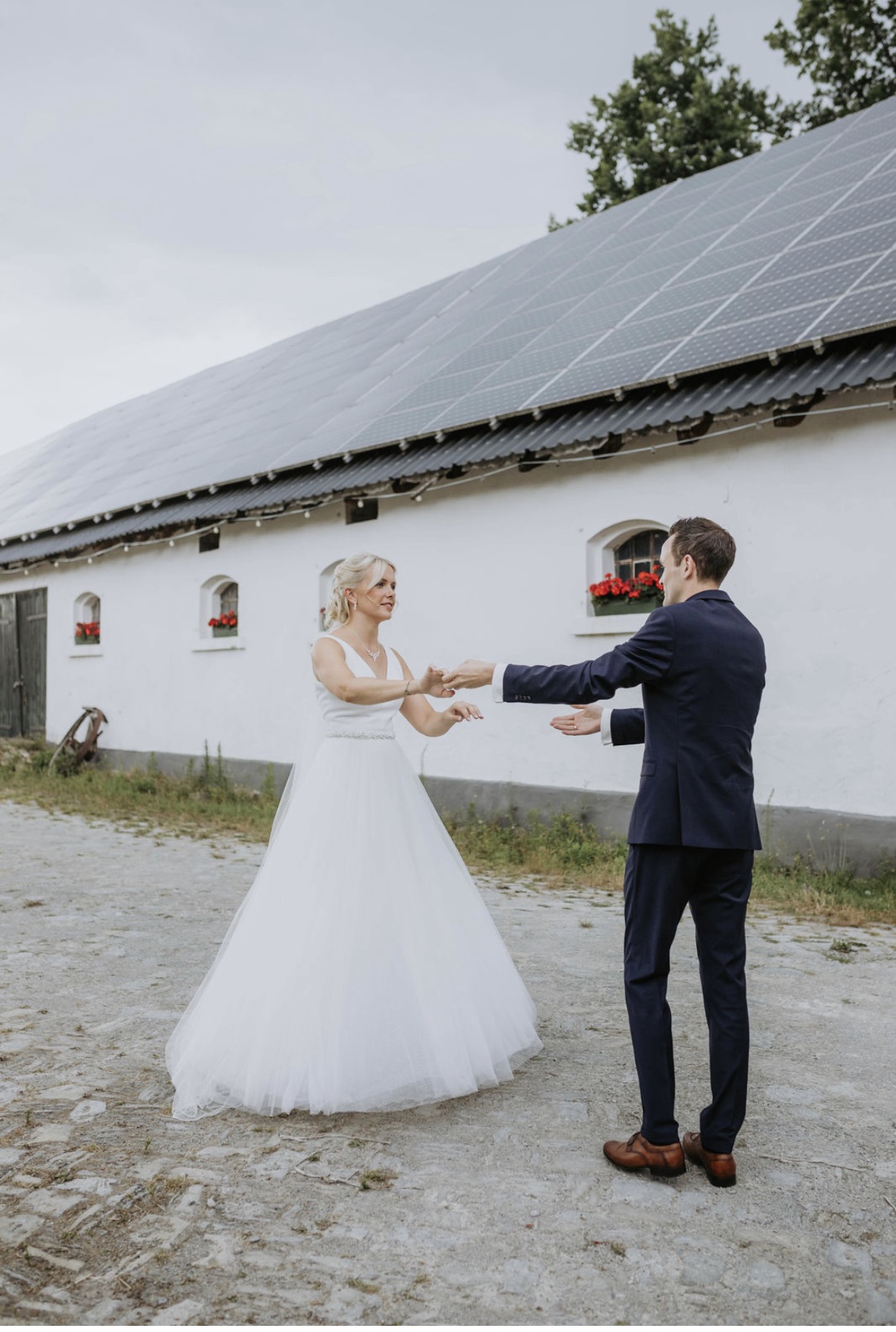 Das Kleid wurde vom spanischen Hersteller Jesus Peiro angefertigt und begeistert einen durch die schlichte Eleganz.