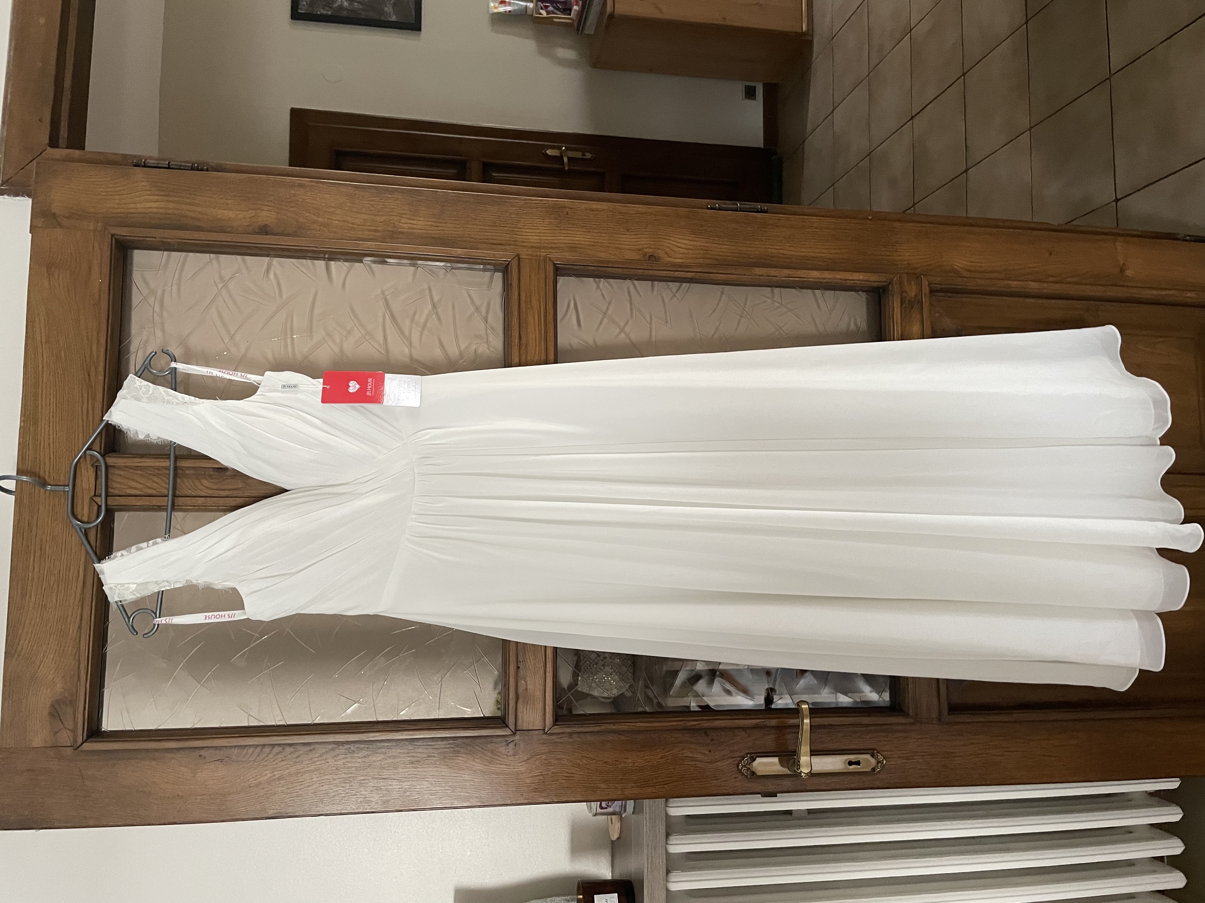 Ich bitte mein wunderschönes Hochzeitskleid zum Verkauf an, das Kleid wurde nie getragen, da ich auf Grund einer Schwangerschaft nicht mehr reinpasste . Die Größe ist L/40 .