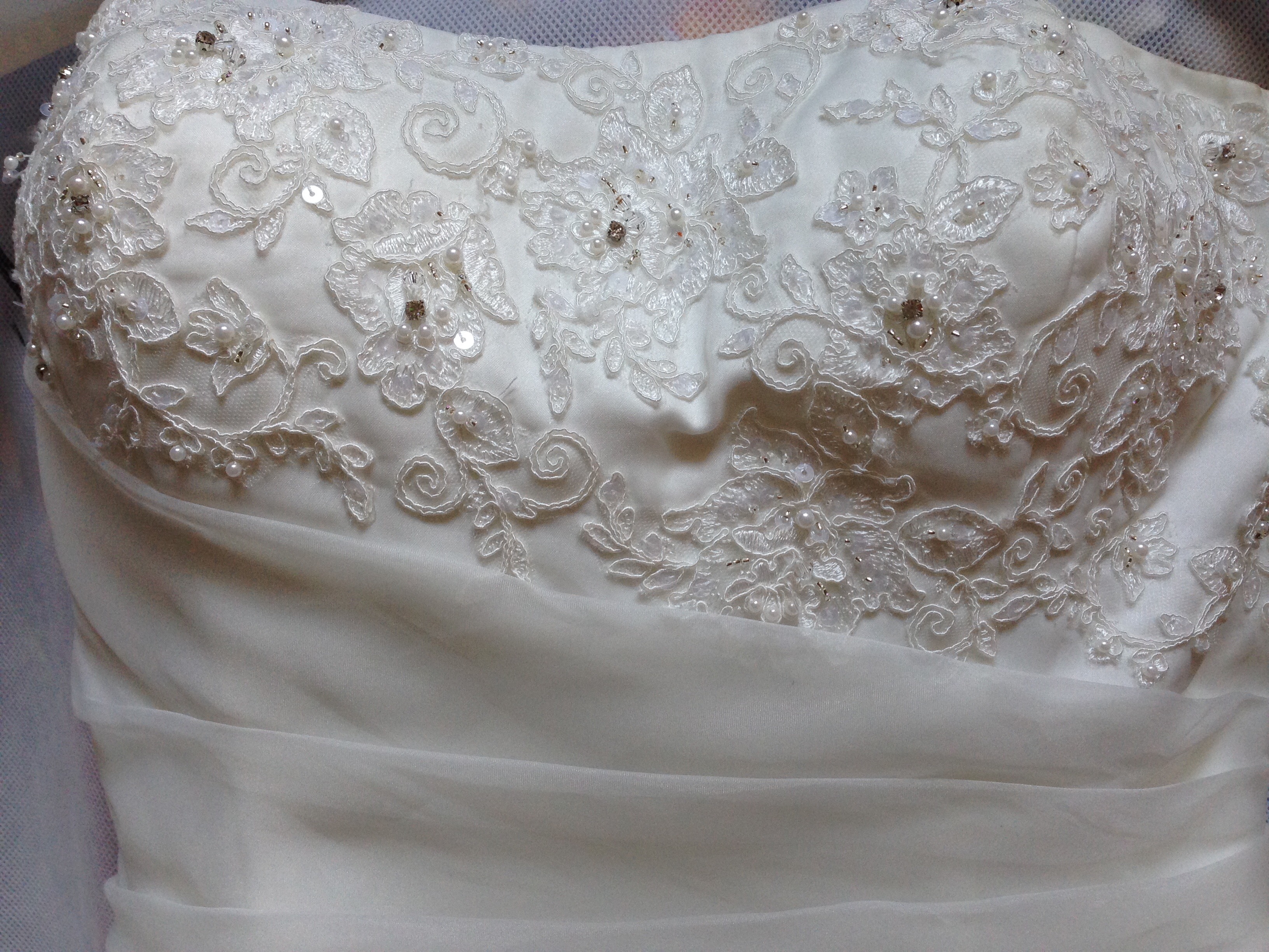Angeboten wird hier ein im Juni 2016 getragenes Brautkleid der Marke Ladybird in klassischer A Linie, Farbe Ivory. Das Dekolleté hat tolle Verzierungen und die Schleppe lässt sich nach Bedarf nach oben schnüren. Es ist leicht asymmetrisch geschnitten und hinten mit einer Schnürung zu schließen, Seriennummer 35030 der aktuellen Ladybirdkollektion. Der Neupreis lag bei €1.129,–. Dazu gibt es noch ein extravagantes Cape ( € 65,–), das sich wunderbar mit dem Kleid kombinieren lässt und ich anstelle eines Schleiers getragen habe. Ursprünglich wurde das Kleid in Größe 40 gekauft, dann aber von einer Schneiderin angepasst, die Länge wurde nur leicht gekürzt, bin 1,69 cm und kann daher noch weiter gekürzt werden. Das Kleid wurde professionell gereinigt und kann gerne besichtigt und probiert werden. Ein wirkliches schönes Kleid, das gerne noch eine weitere Braut glücklich machen würde. Der Preis ist verhandelbar, bei Interesse einfach melden. Idealerweise per Mail: Rilanaphilipp@gmx.de oder telefonisch unter 07622/672533
