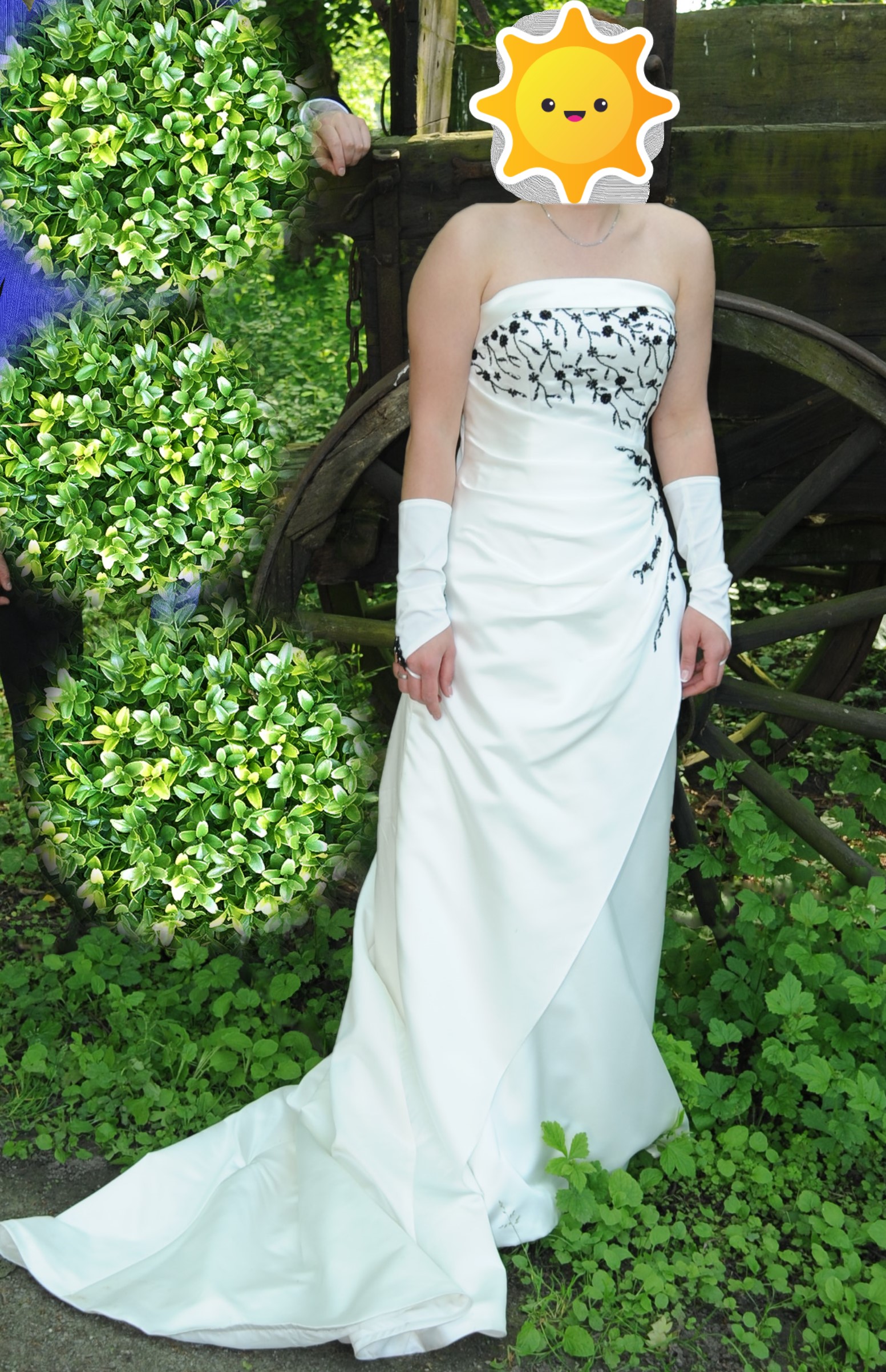 Das Kleid hat eine kleine Schleppe, die zum Tanzen nach oben in die Hand genommen wird mit einer Schlaufe. Das Kleid ist einmal getragen und gereinigt. Schmiegt sich an die Trägerin an.