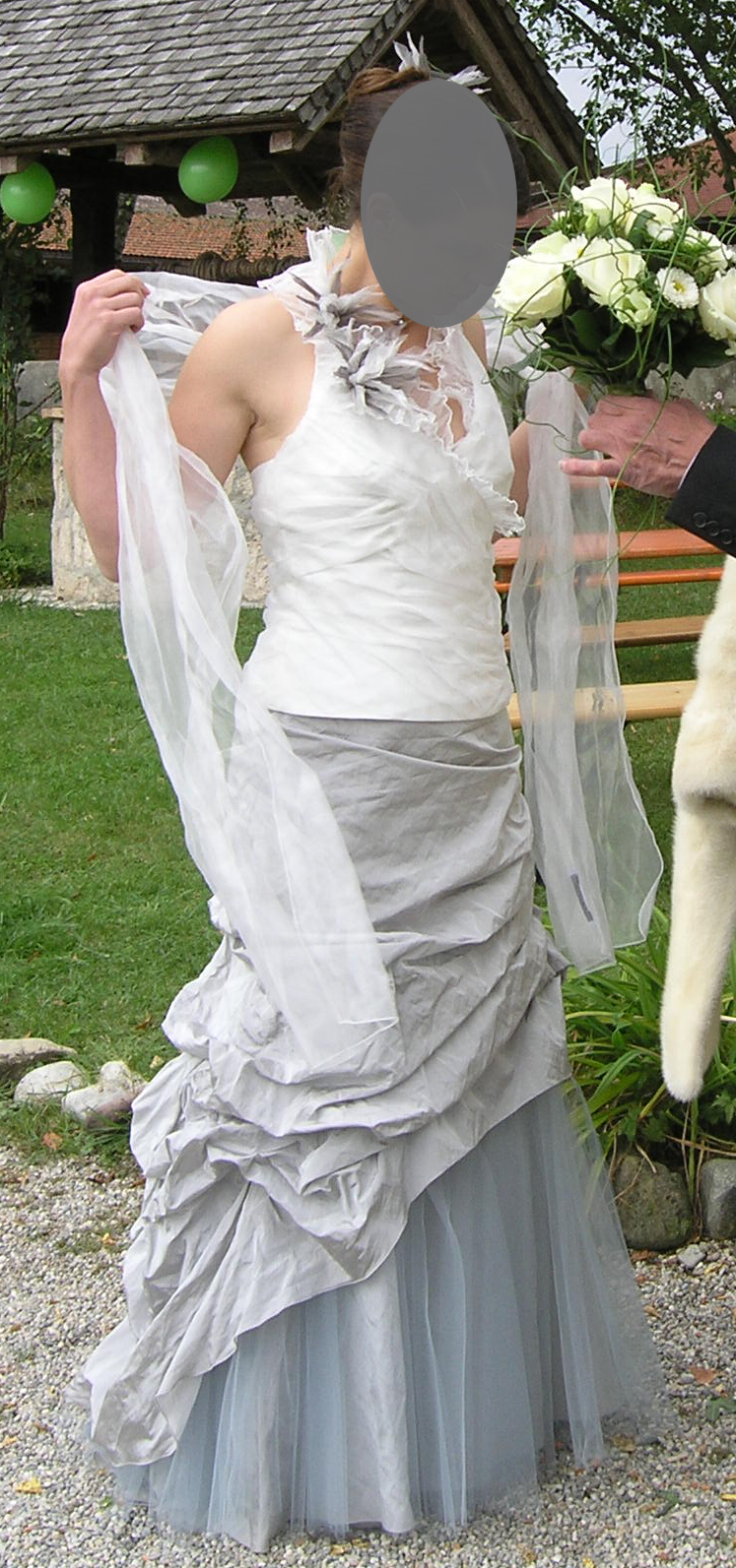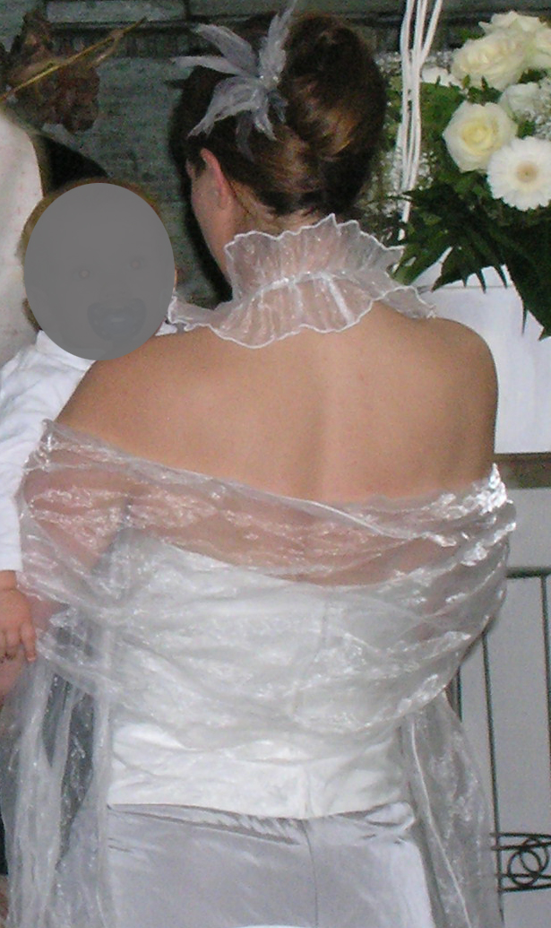 Kurz vor der Hochzeit musste das Oberteil noch angepasst werden, ich denke es entspricht jetzt einer Größe 40.