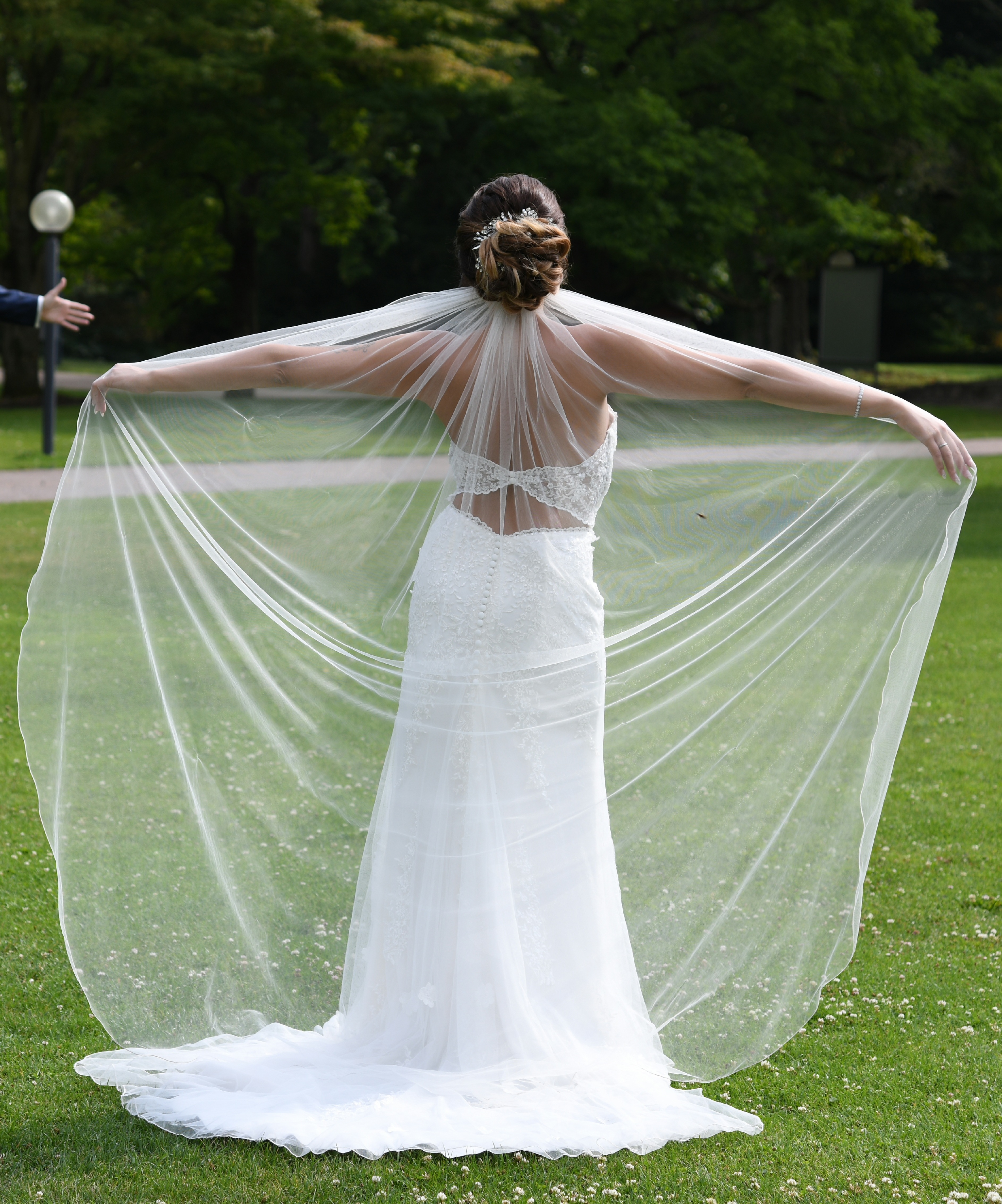 Die angebrachte Schleppe kann bei Bedarf hochgebunden/hochgesteckt werden.