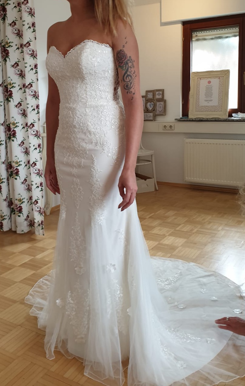 Ich verkaufe schweren Herzens mein wunderschönes Hochzeitskleid der Marke JUSTIN ALEXANDER, Sweetheart No. 1129, Größe 34, in der Farbe Ivory. Das Kleid habe ich natürlich nur 1 x getragen und wurde nach der Hochzeit professionell gereinigt. Rechnung der Reinigung kann bei Bedarf vorgelegt werden.