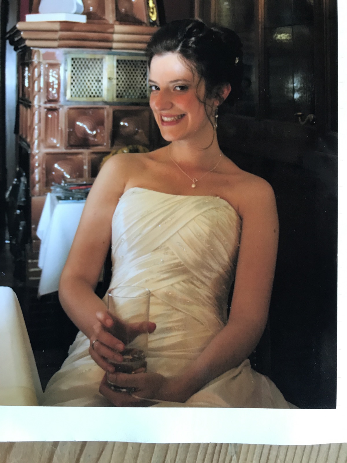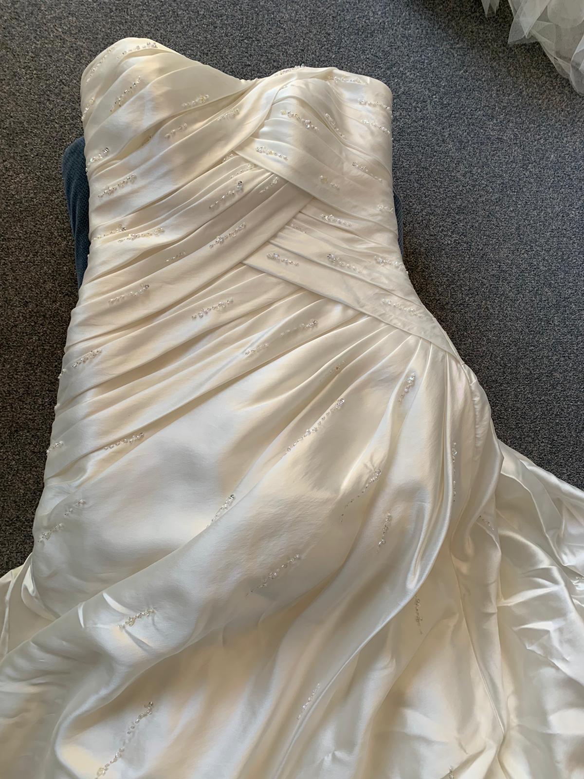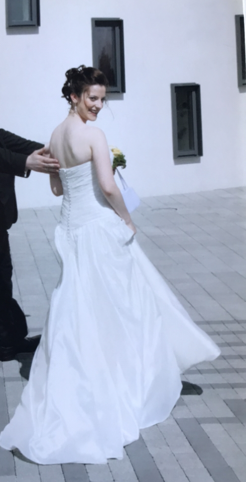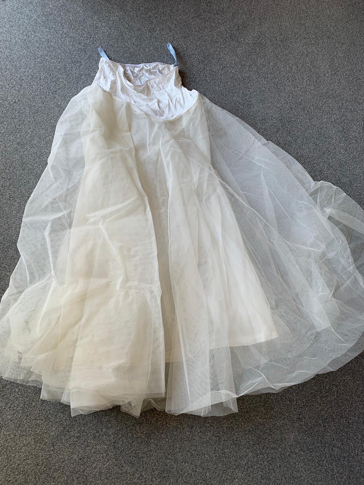 Das Brautkleid La Posa ist gereinigt und der Unterrock ist im Preis inbegriffen.