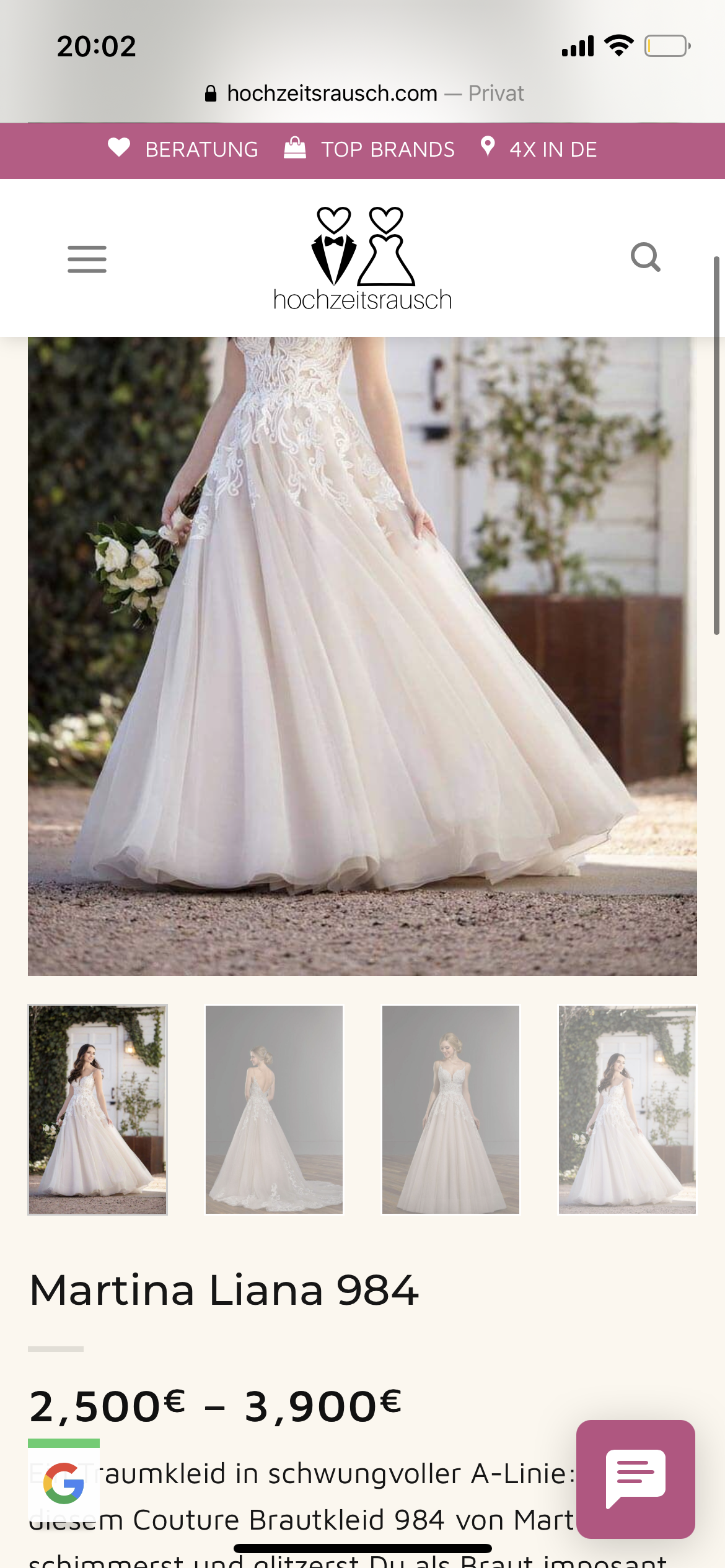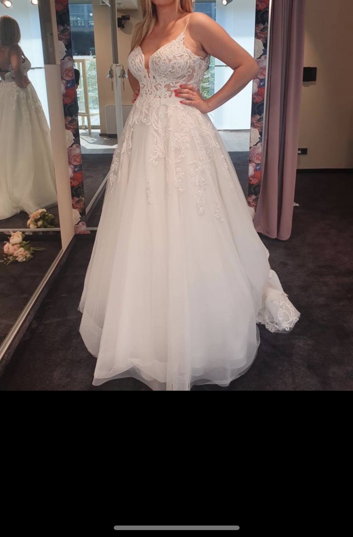Nagelneues Hochzeitskleid gekauft und nicht getragen da die Hochzeit nicht stattgefunden hat. Original Preis 3200 € . Mit den Prozenten habe ich es für 2500 gekauft und verkaufe es für 2300€