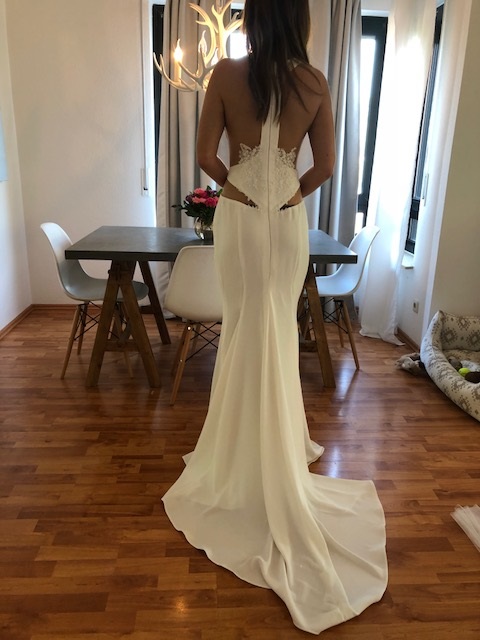 Kann auch später als Abend-oder Partykleid getragen werden und auf dem Weg zum Altar ganz pomös und abends sexy und elegant .