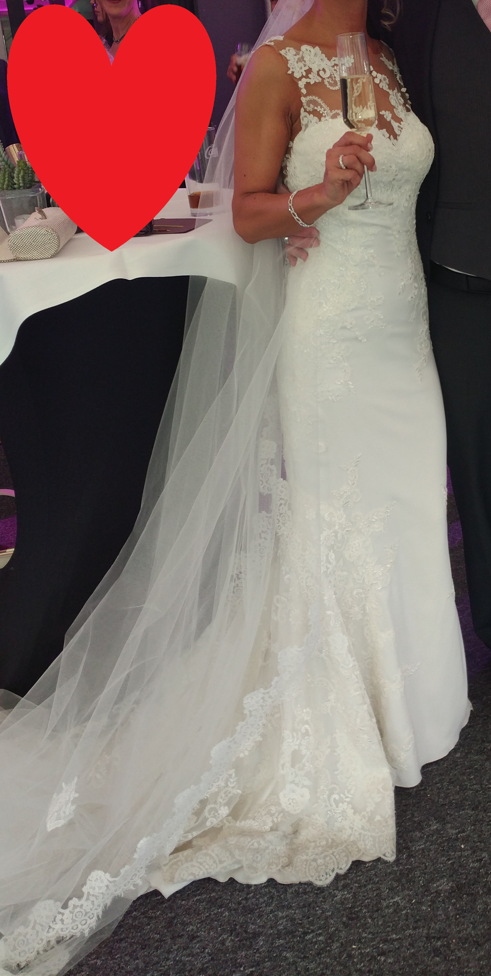 Das Kleid wurde wie üblich nur für ein paar Stunden zu meiner Hochzeit im September 2018 getragen und anschließend professionell gereinigt.
