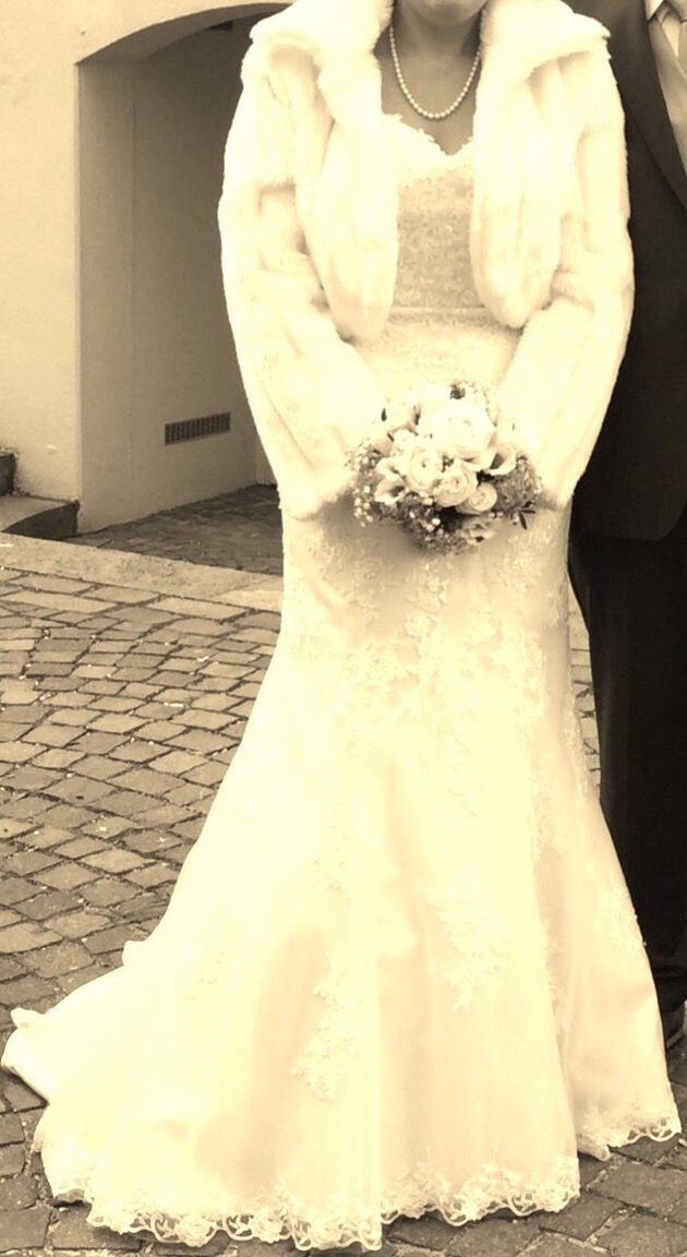 Verkaufe mein Brautkleid in Gr 44 die genaue Farbe ist Ivory!