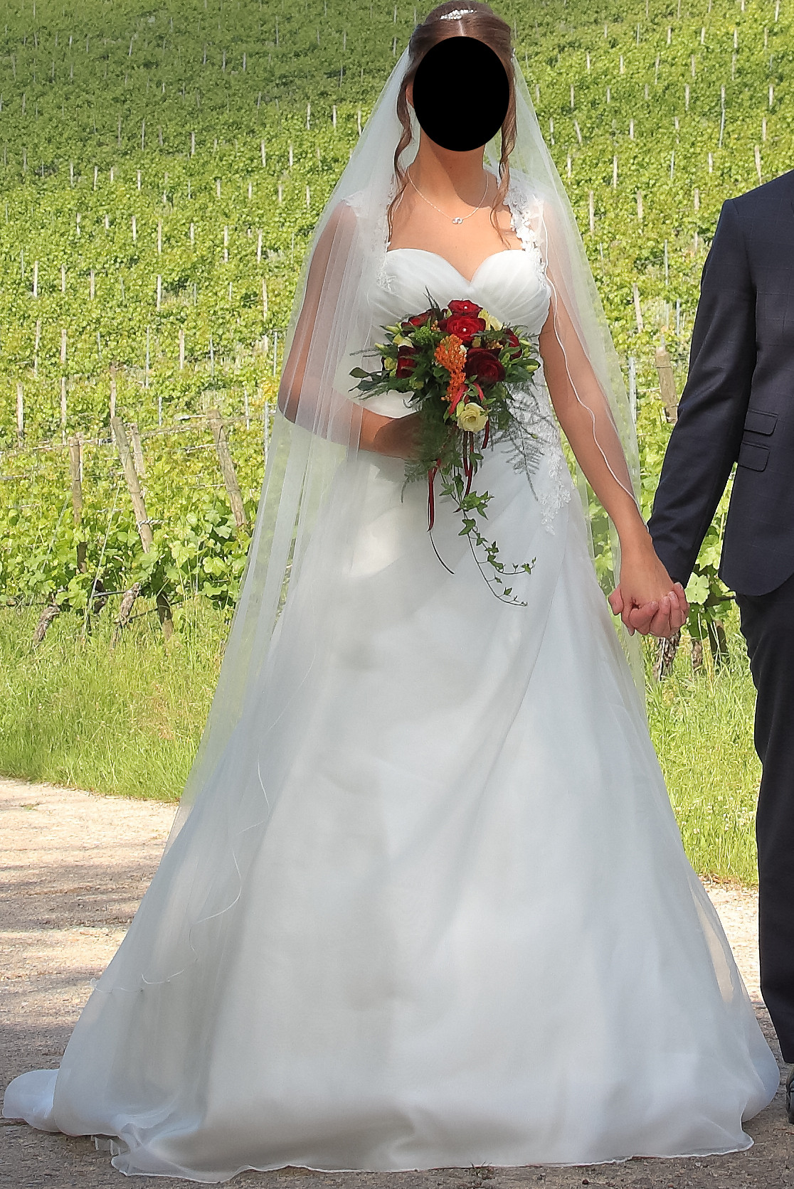 Ein langer feiner Schleier ist ebenfalls bei dem Kleid dabei. Länge ca. 63cm