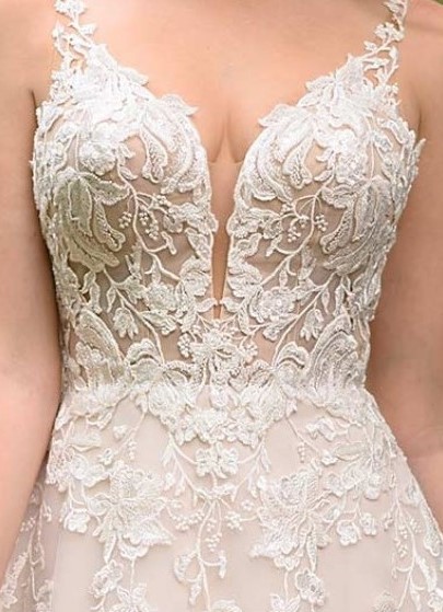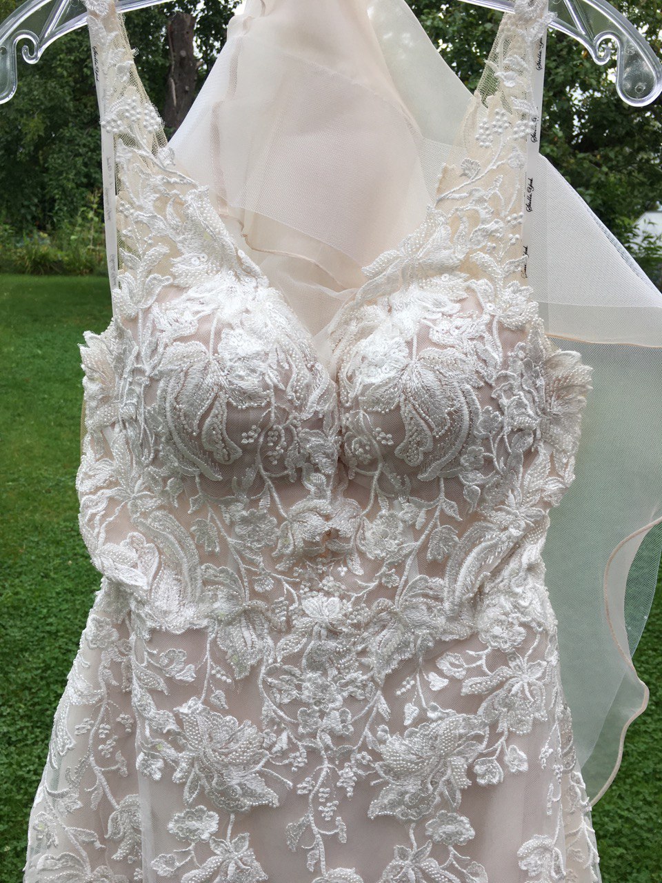 Hochwertiges Nicole Sposa Brautkleid Tatoospitze
