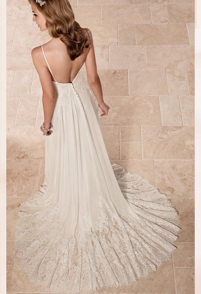 Das Kleid wurde von Größe 38 auf Größe 36 sehr aufwendig angepasst. Ich bin 1,68 cm groß und wiege 60 kg. Nachträglich habe ich noch einen BH einnähen lassen damit macht es eine sehr schöne Figur. Das Kleid trägt sich super leicht und ist sehr schnell angezogen. Die lange Schleppe ist perfekt für Fotos und das einlaufen, danach kann man es schnell hochbinden und es sieht dann immernoch toll aus. Ich gebe es nur schweren Herzens her aber das Kleid ist einfach viel zu schade um nur im Schrank zu hängen. Es wurde selbstverständlich professionell gereinigt und wartet auf eine neue wunderschöne Braut!