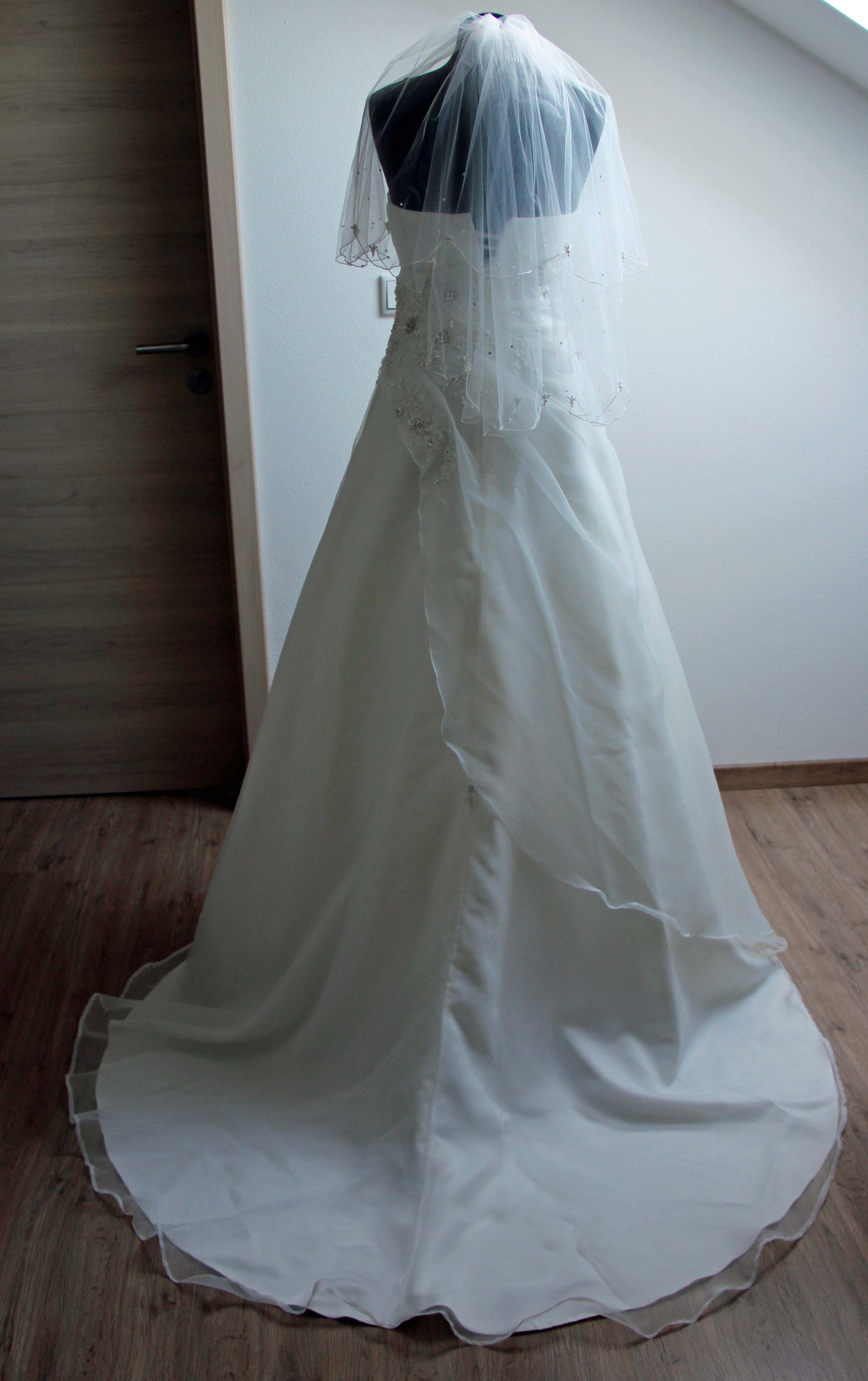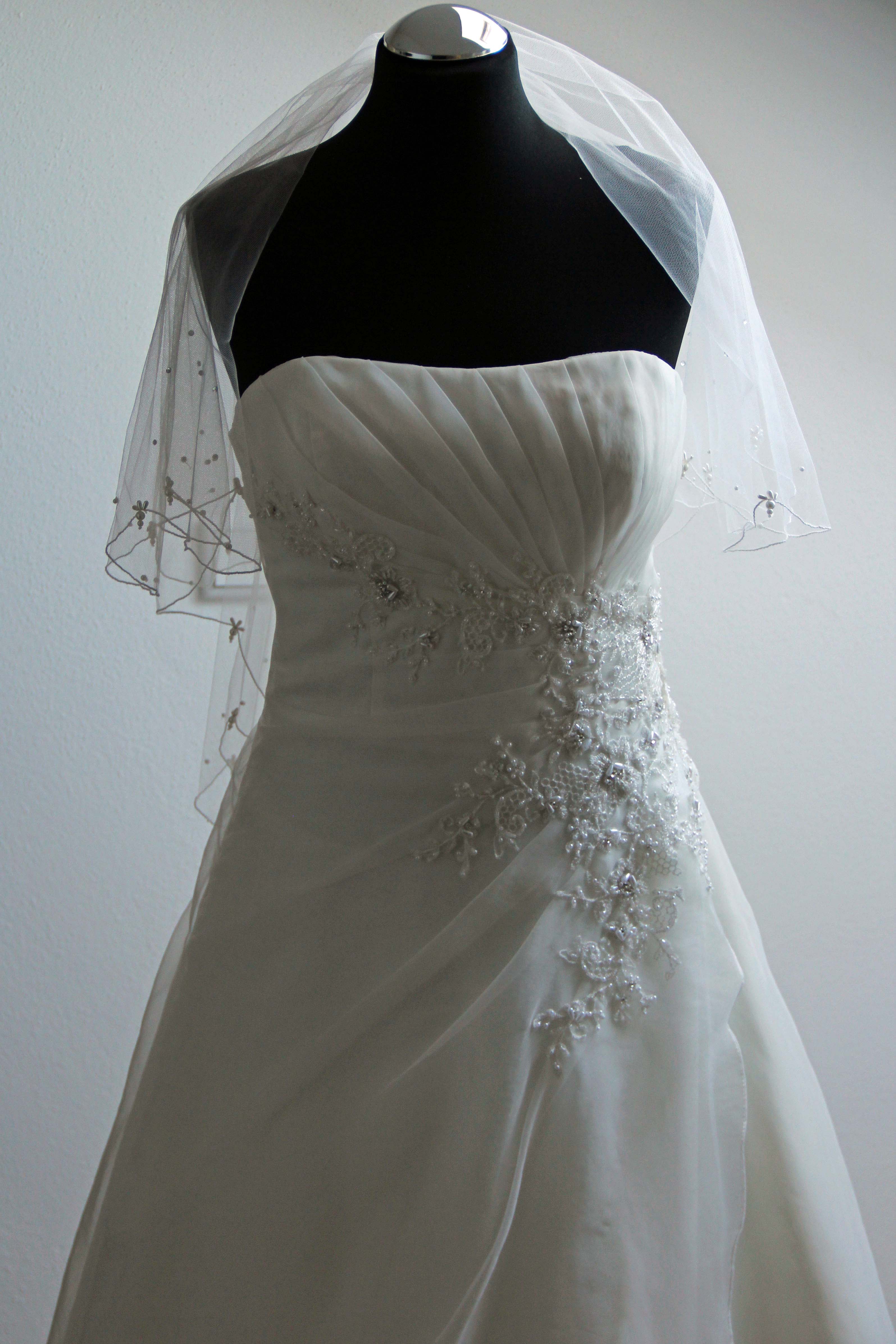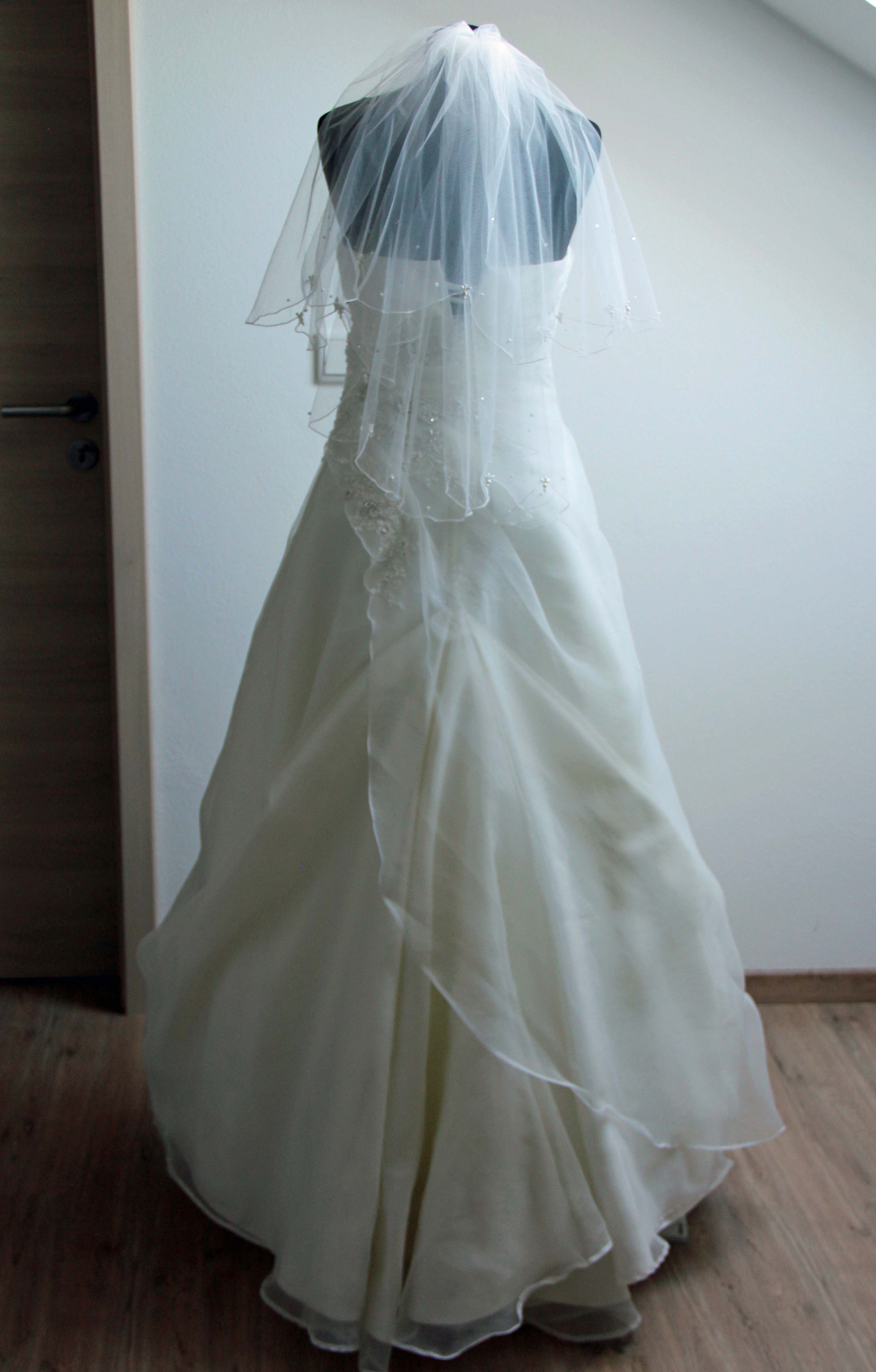 Auch den abgebildeten Schleier, passend zum Kleid, lege ich bei.
