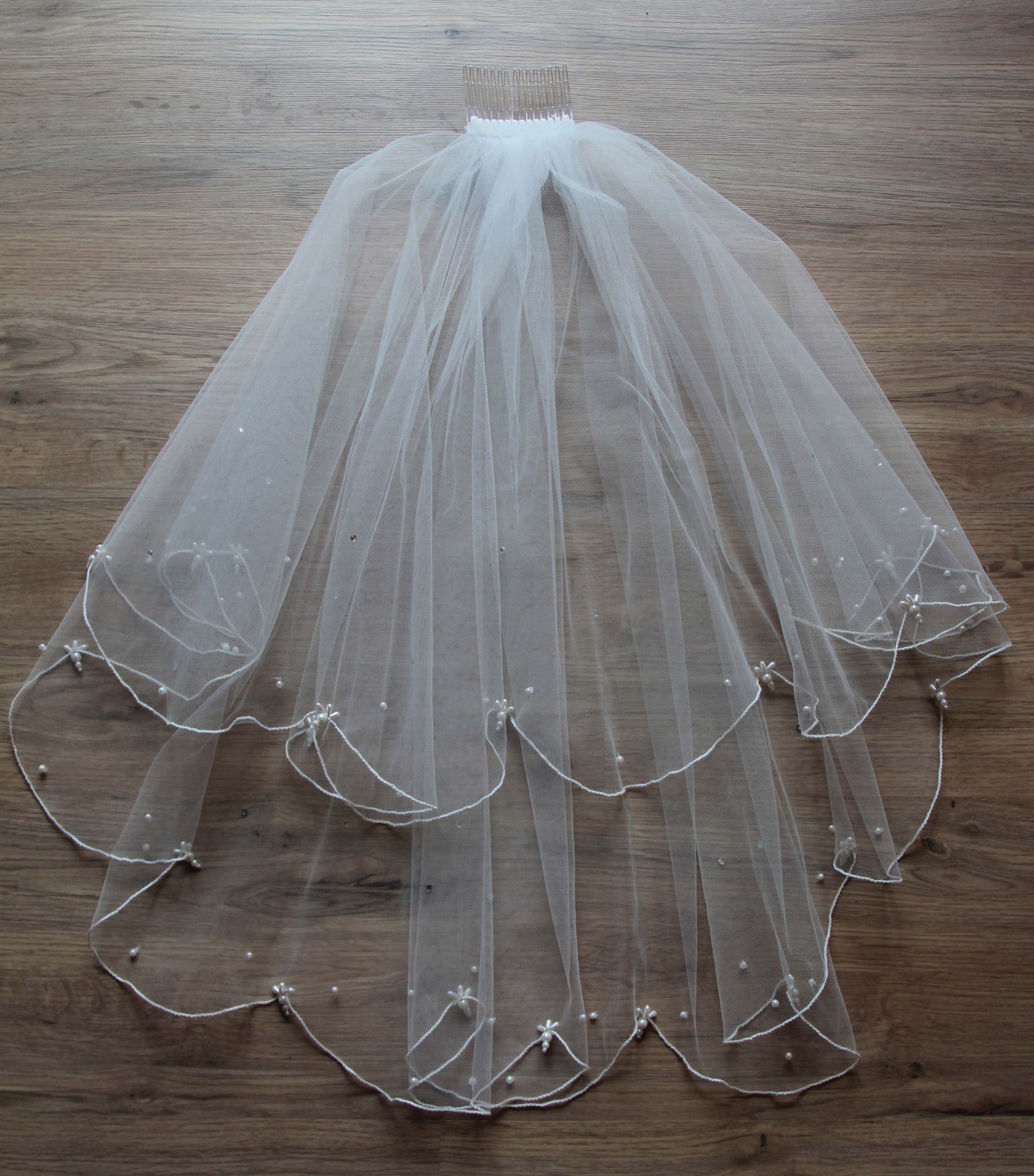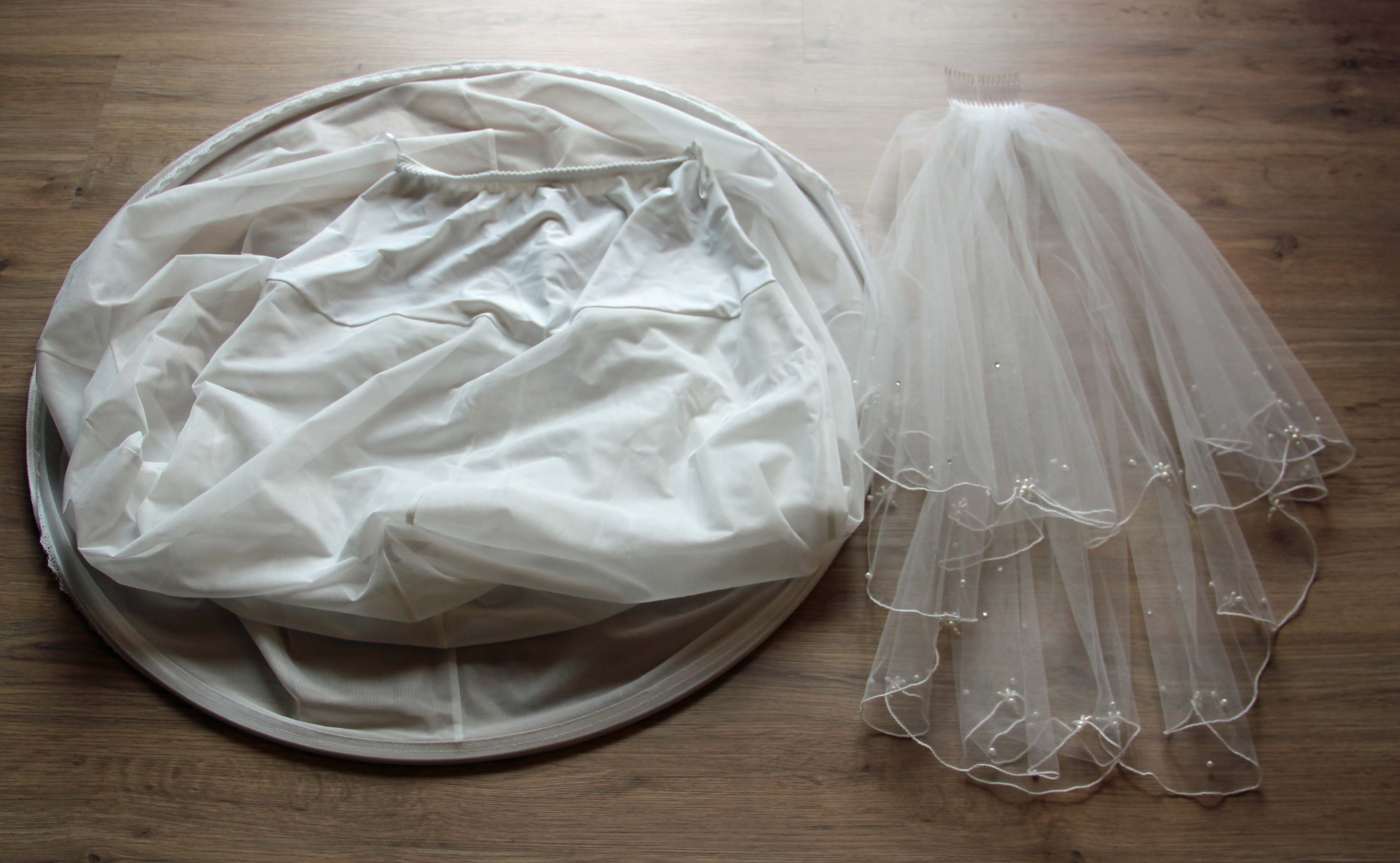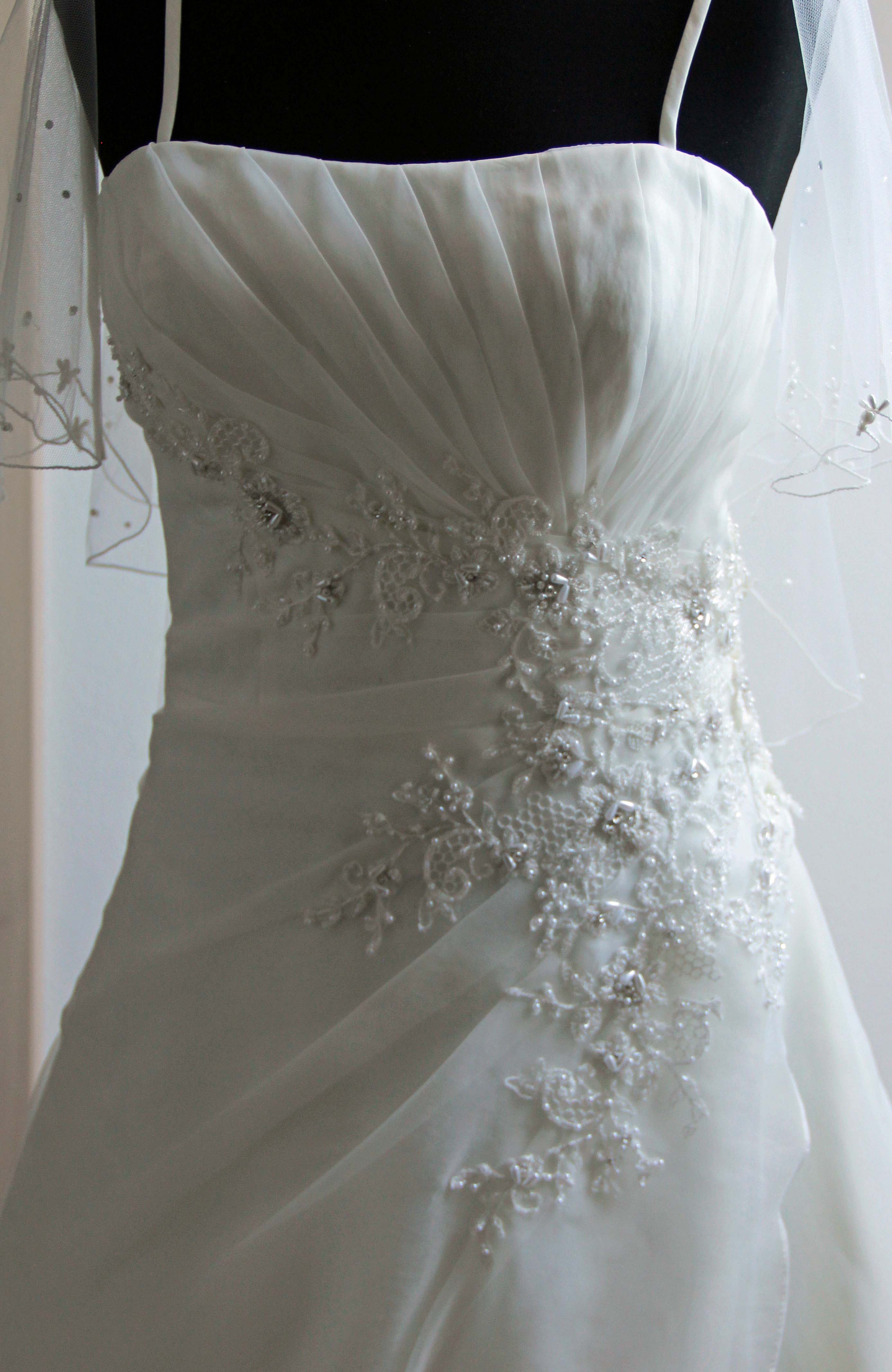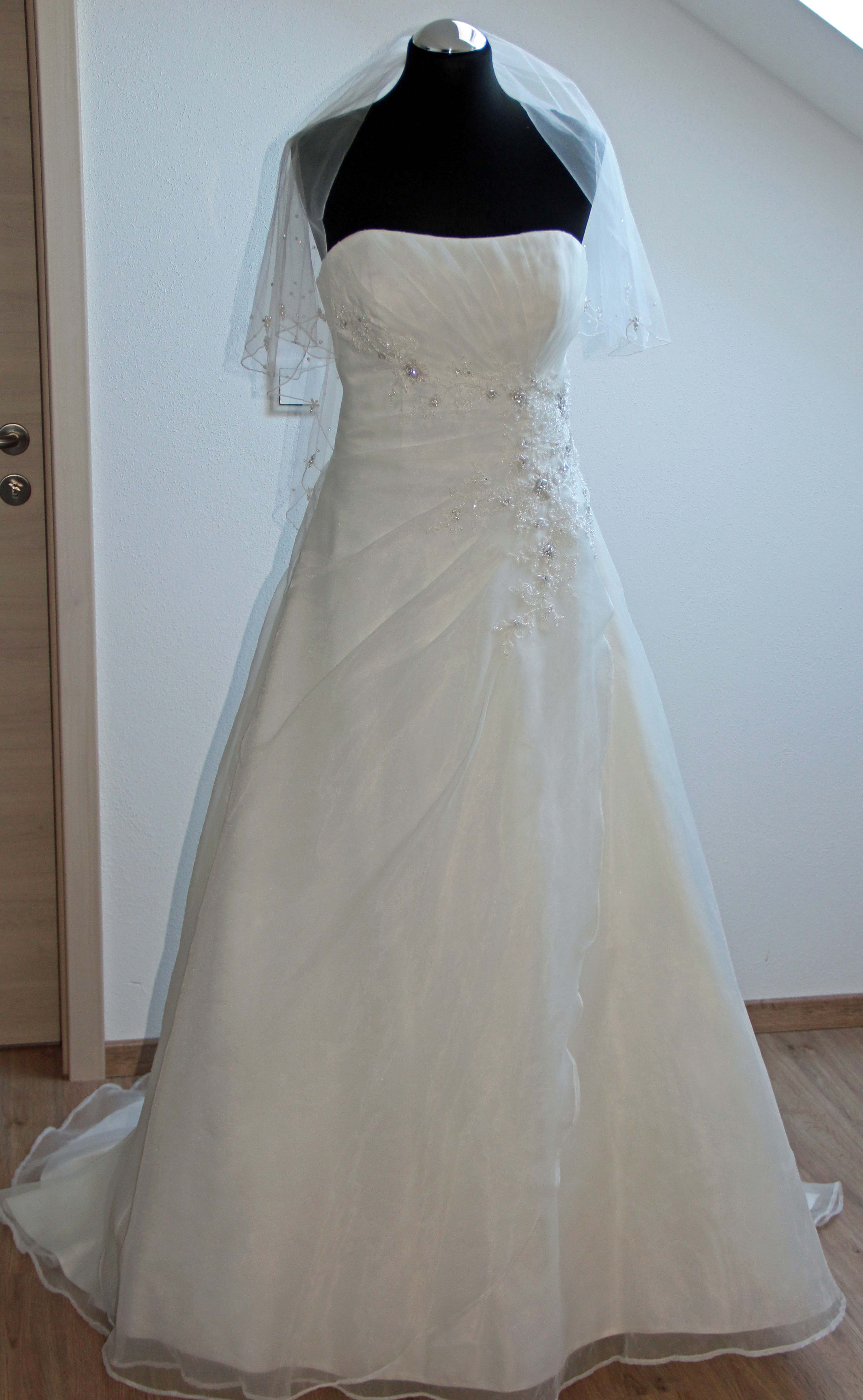 Auch den abgebildeten Schleier, passend zum Kleid, lege ich bei.