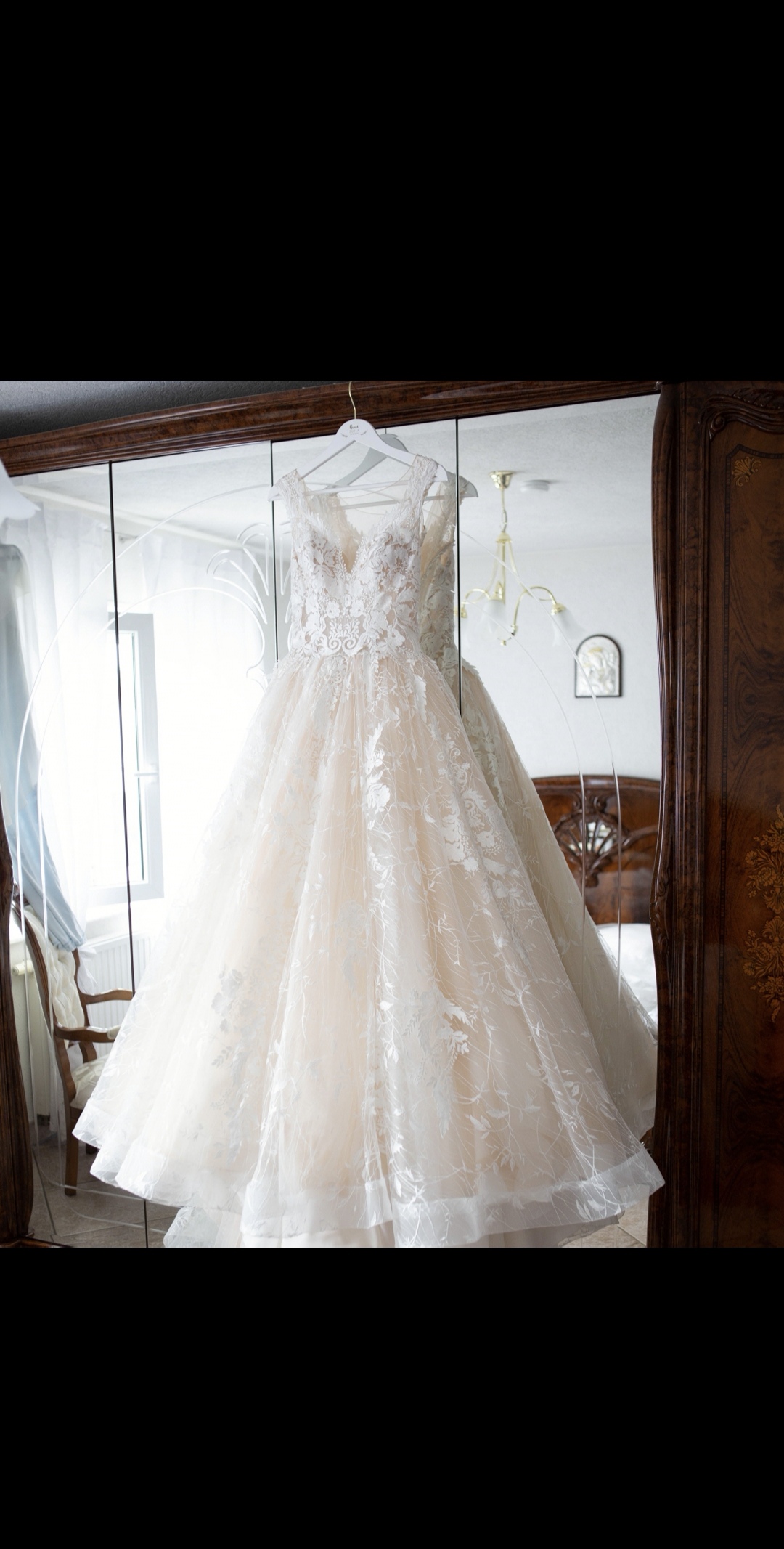 Ich verkaufe mein traumhaftes Brautkleid was ich zu meiner Hochzeit letztes Jahr getragen habe. Das Brautkleid ist von der Marke „Vanilla Sposa“ aus Italien.