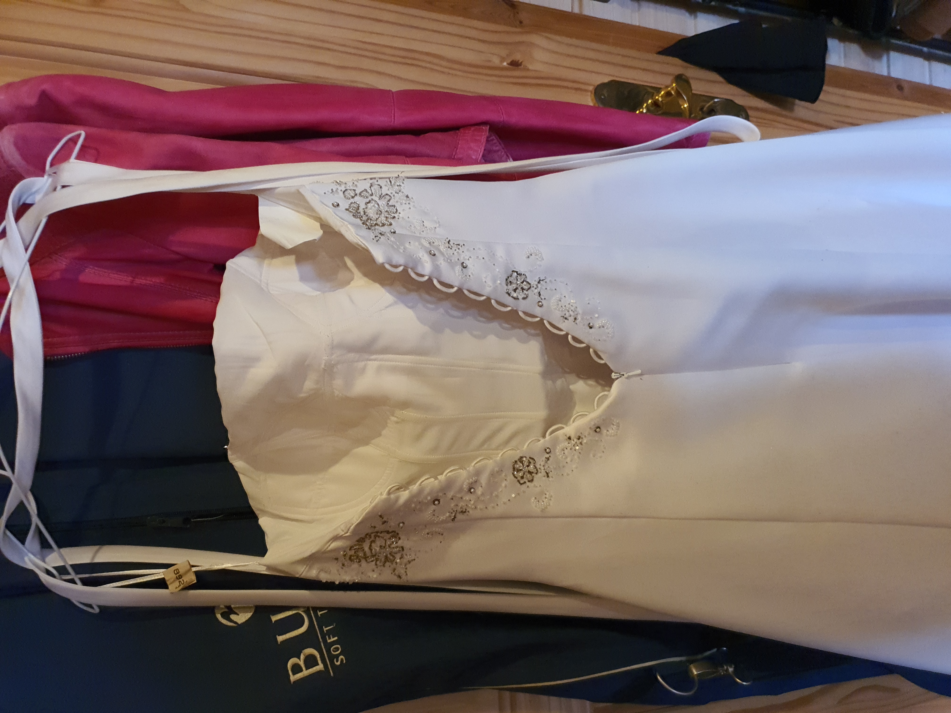 Verkaufe wunderschönes Kleid, ich habe Größe 36/38 bei einer Größe von 167 cm. Tolle Perlenaufsätze vorne und das Mieder hinten geschnürt runden dieses tolle Kleid ab.