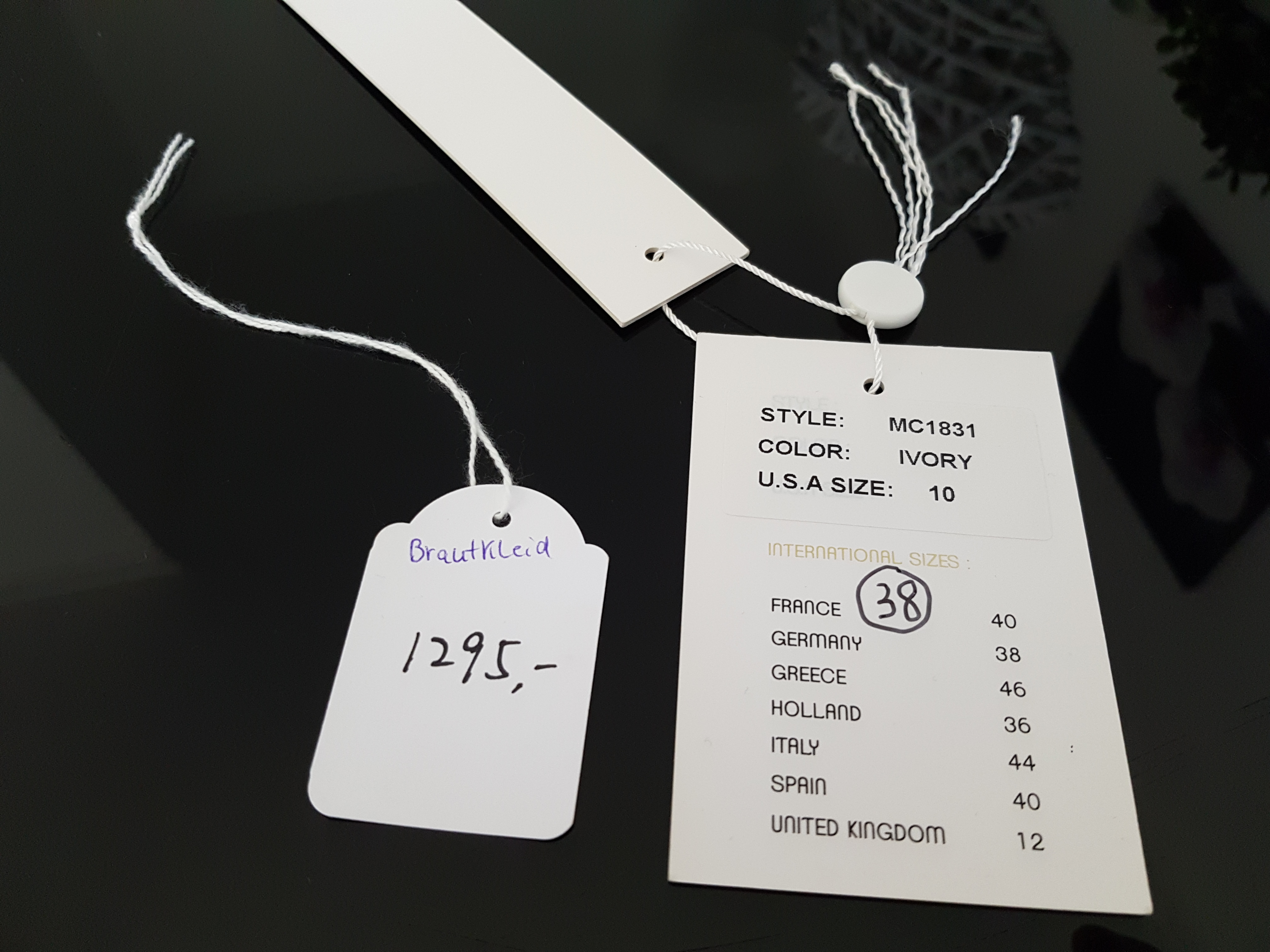 ich möchte hier gerne mein wunderschönes Brautkleid von Marie Claire in der EU-Größe 38 und in der Farbe “Ivory” (Elfenbeinfarben) zum Verkauf anbieten. Es wurde im Brautmoden-Geschäft Audrey in Köln gekauft. Neupreis: 1295€